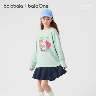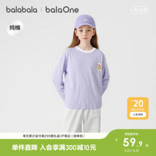 上衣大童纯棉打底衫 巴拉巴拉童装 新款 t恤儿童2026春季 潮 女童长袖