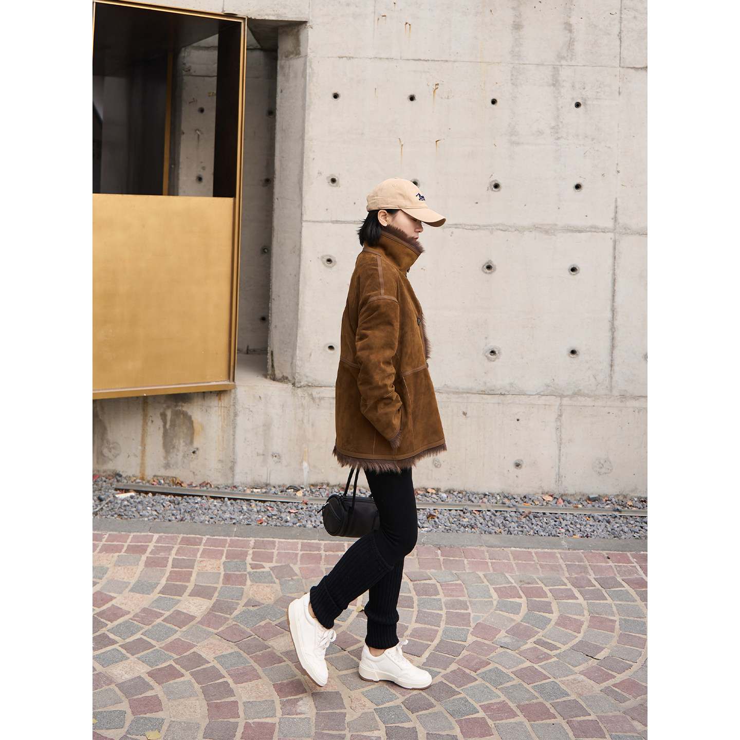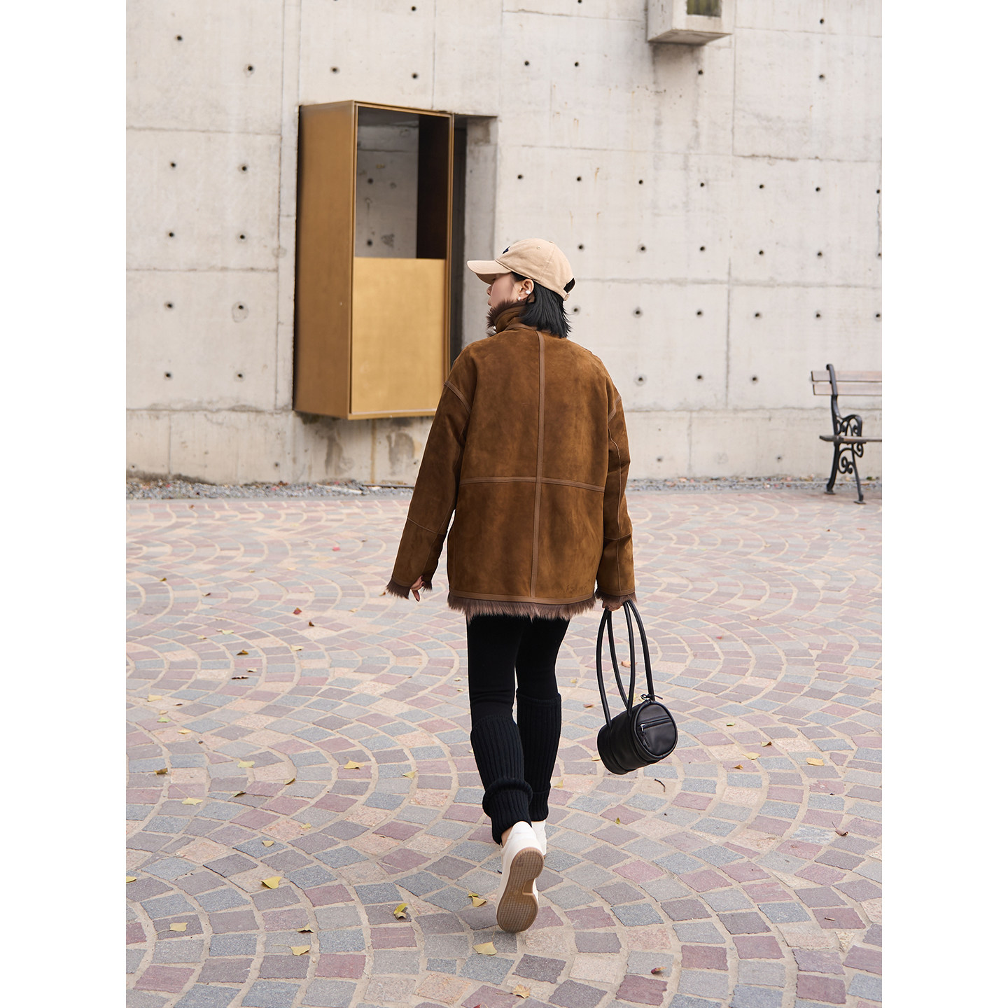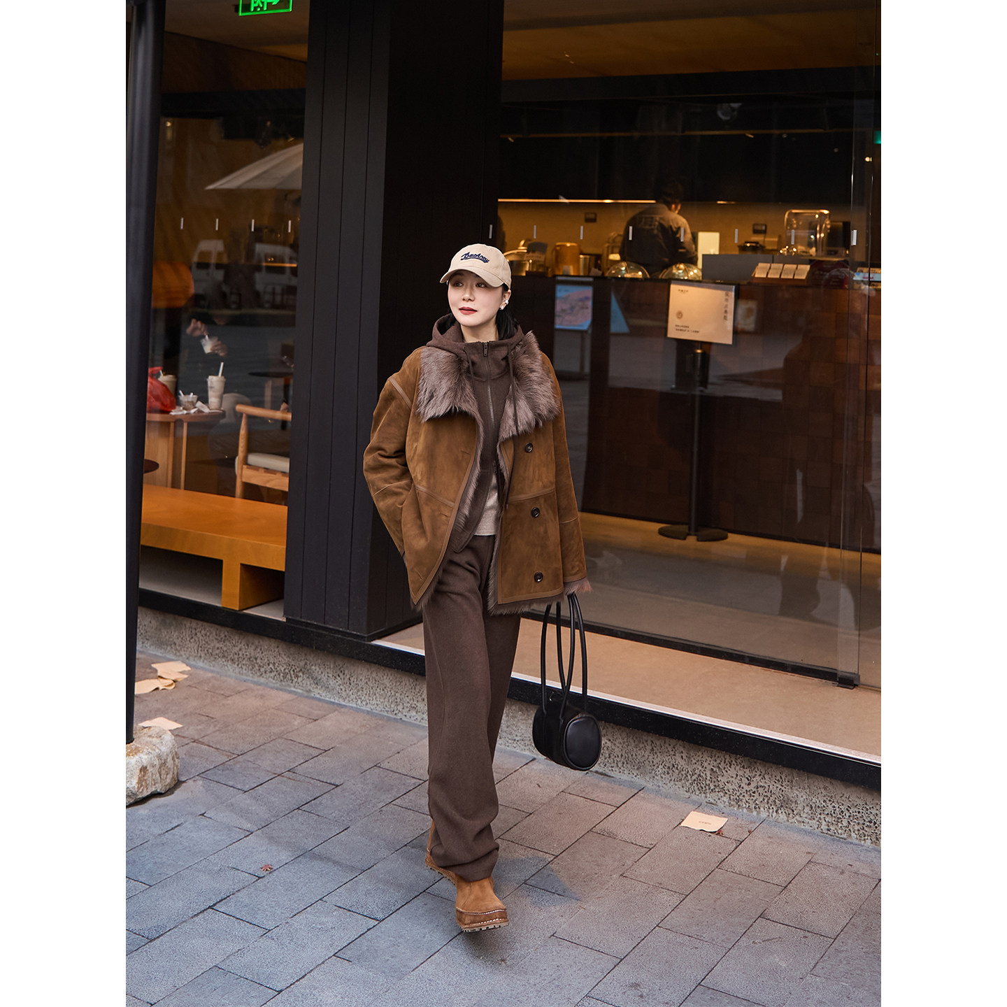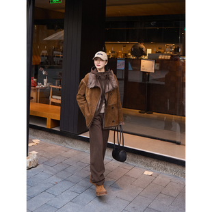 大衣 皮毛一体加厚保暖短款 奔跑吧白鹿同款 麂皮绒皮草外套女秋冬季