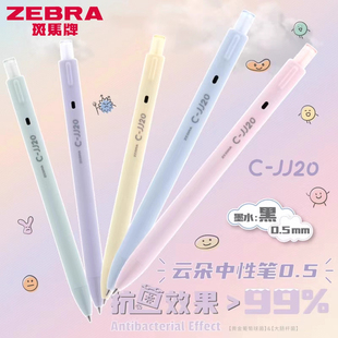 日本ZEBRA斑马云朵中性笔JJ20抗菌笔高颜值可爱马卡龙色系少女心子弹头大容量学生用刷题考试黑色水笔0.5mm