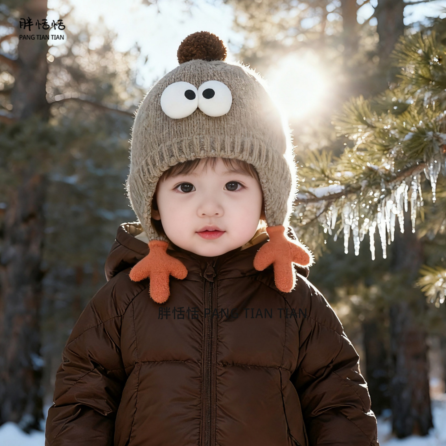 宝宝帽子冬季 可爱鹿角保暖毛绒鸭舌帽男女童加厚防风防寒棒球帽潮
