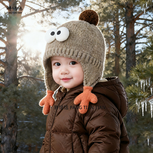贝肽斯宝宝帽子冬季 男童女孩加绒加厚围巾防风保暖外出毛绒护耳帽
