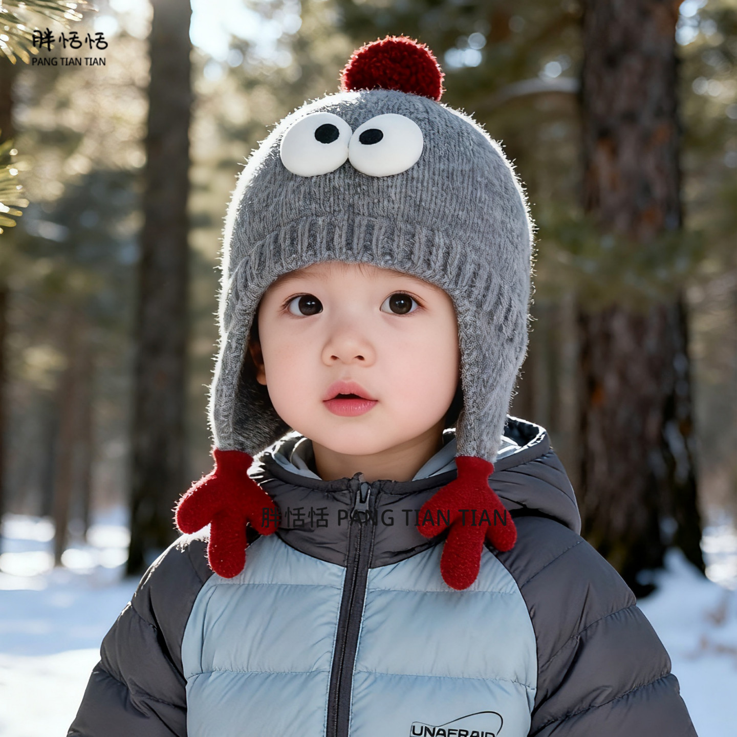 秋冬季 儿童帽子女童针织帽宝宝保暖护耳防寒套头帽 男童毛线帽韩版