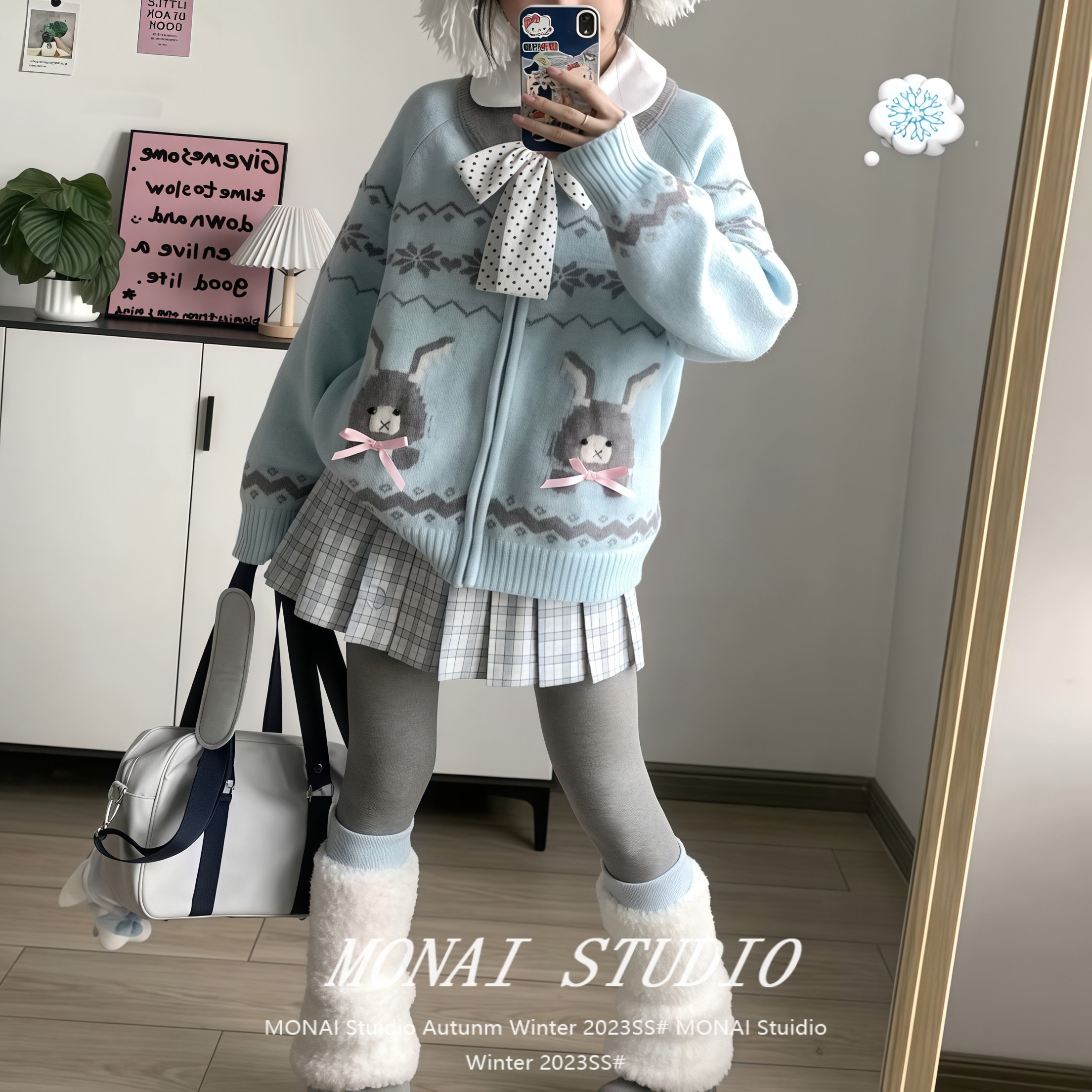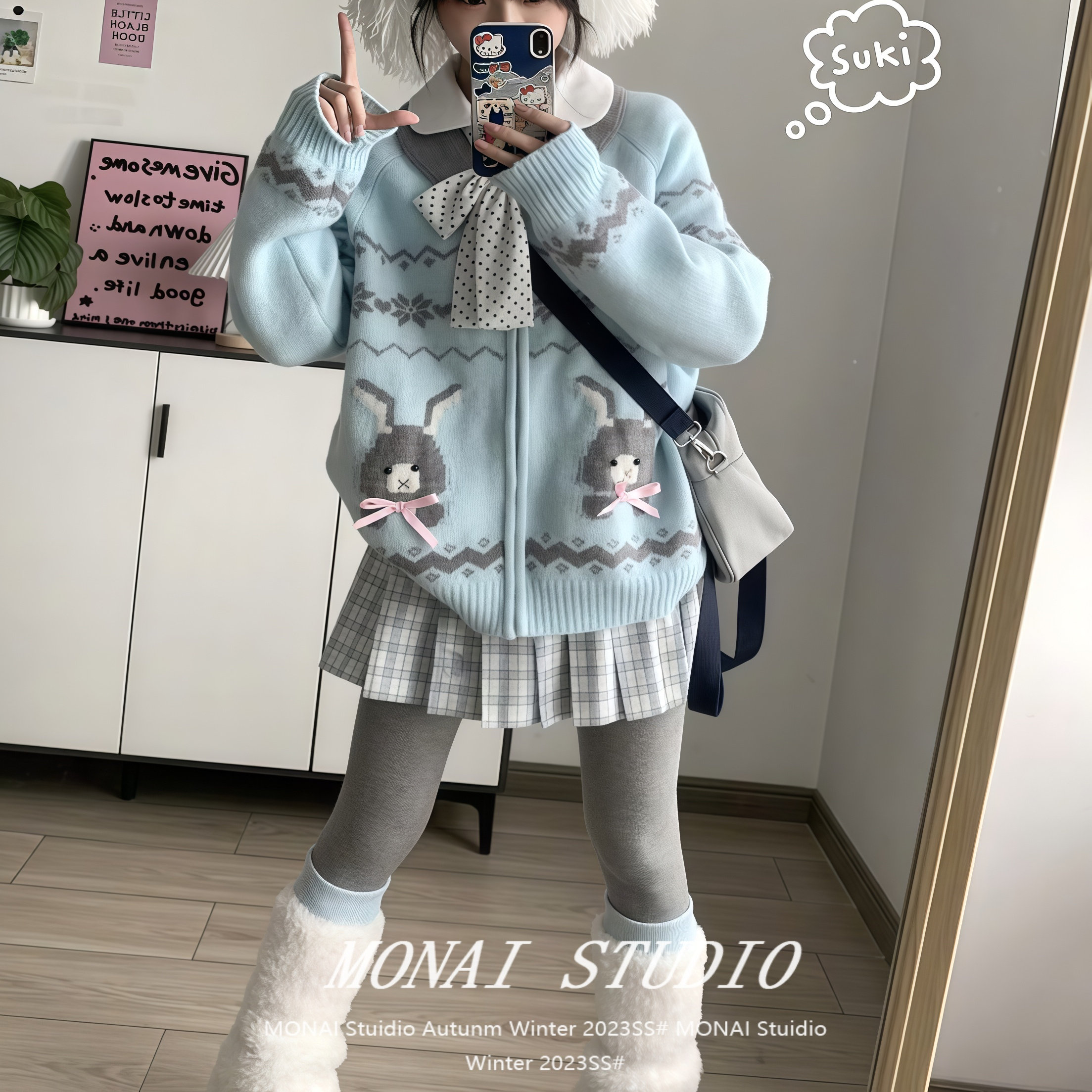 可爱针织衫 巨好看兔子提花费尔岛毛衣女秋冬新款 外套 echosta
