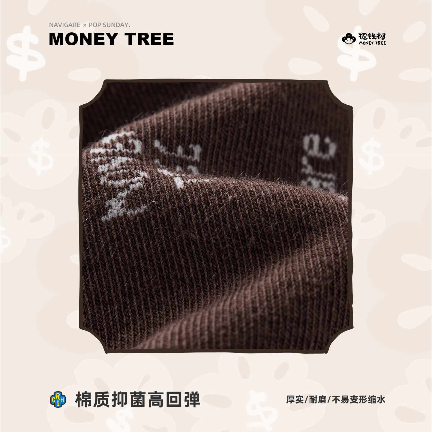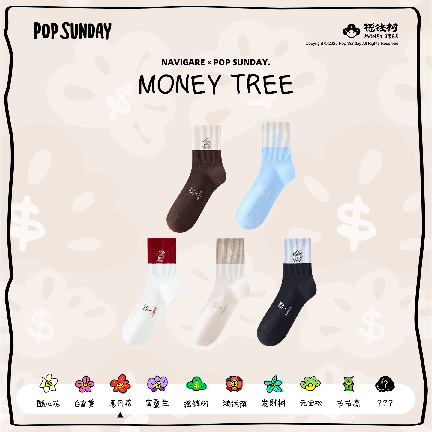Navigare小帆船高弹抑菌棉袜休闲撞色袜子 POPSUNDAY摇钱树联名
