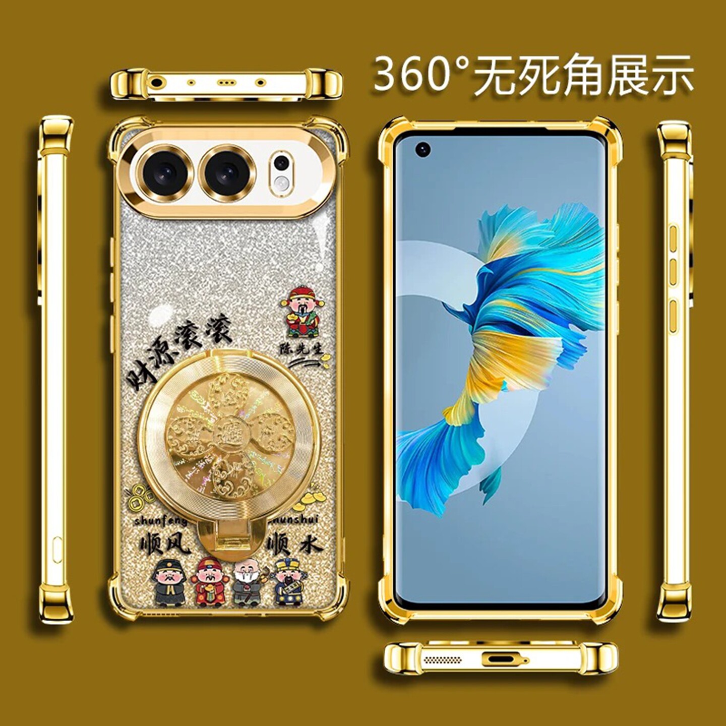 300外壳风生水起支架荣耀50Pro防摔手机套男款 姓氏定制财源滚滚适用荣耀500手机壳新款 高级金色渐变荣耀400
