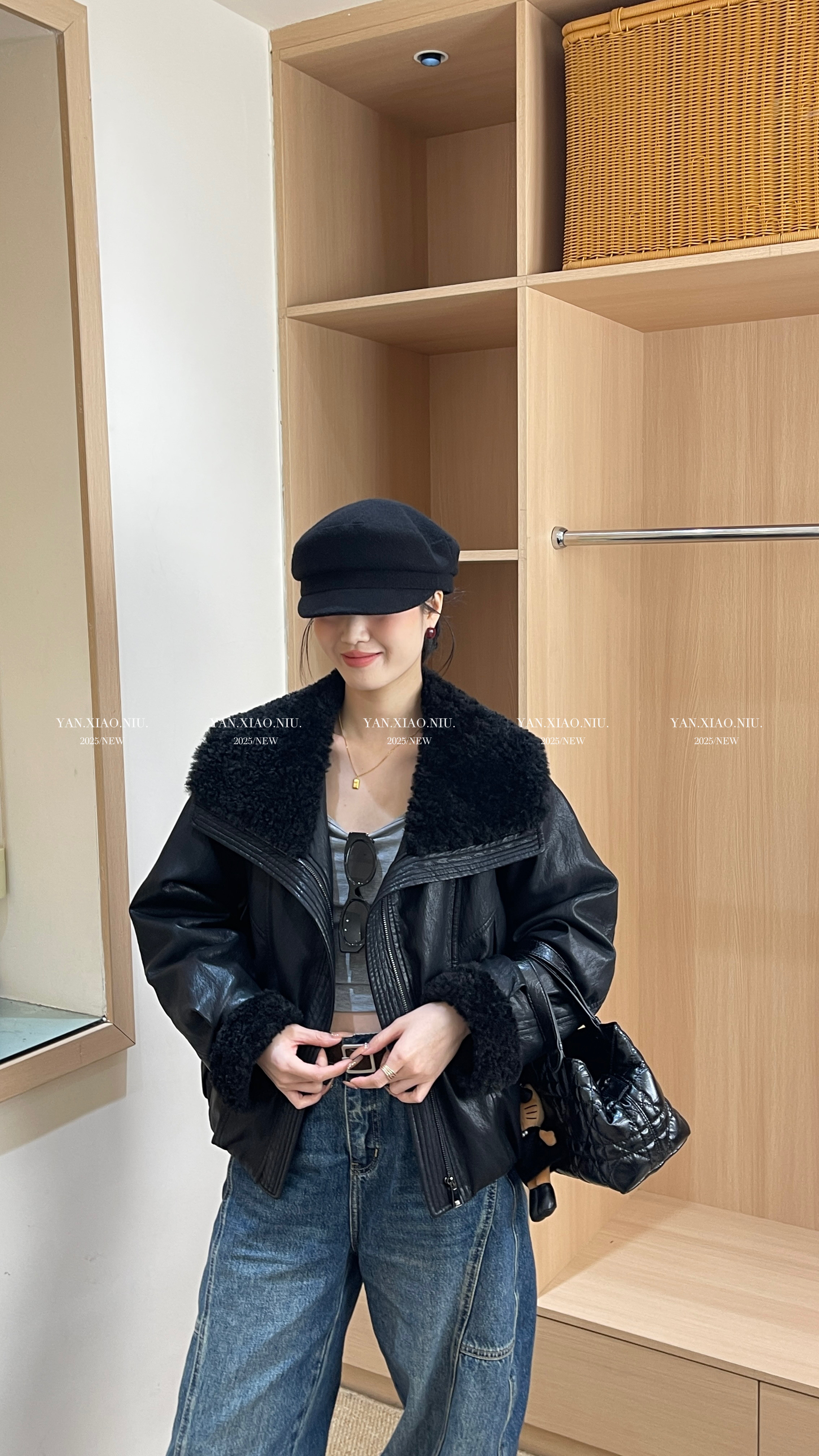 气质百搭加厚保暖内胆羽绒皮衣翻领短款 韩版 外套女 新款 57130冬季