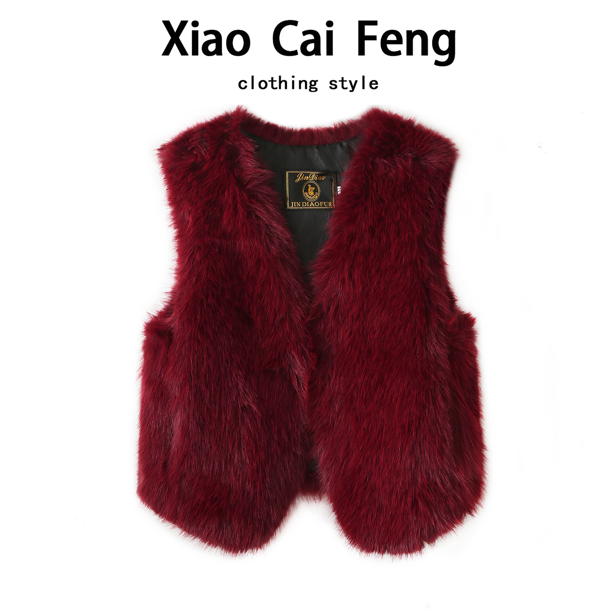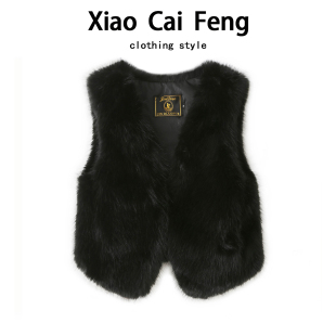 仿狐狸毛马甲背心女秋冬年轻款 坎肩上衣 v领环保皮草皮毛一体无袖
