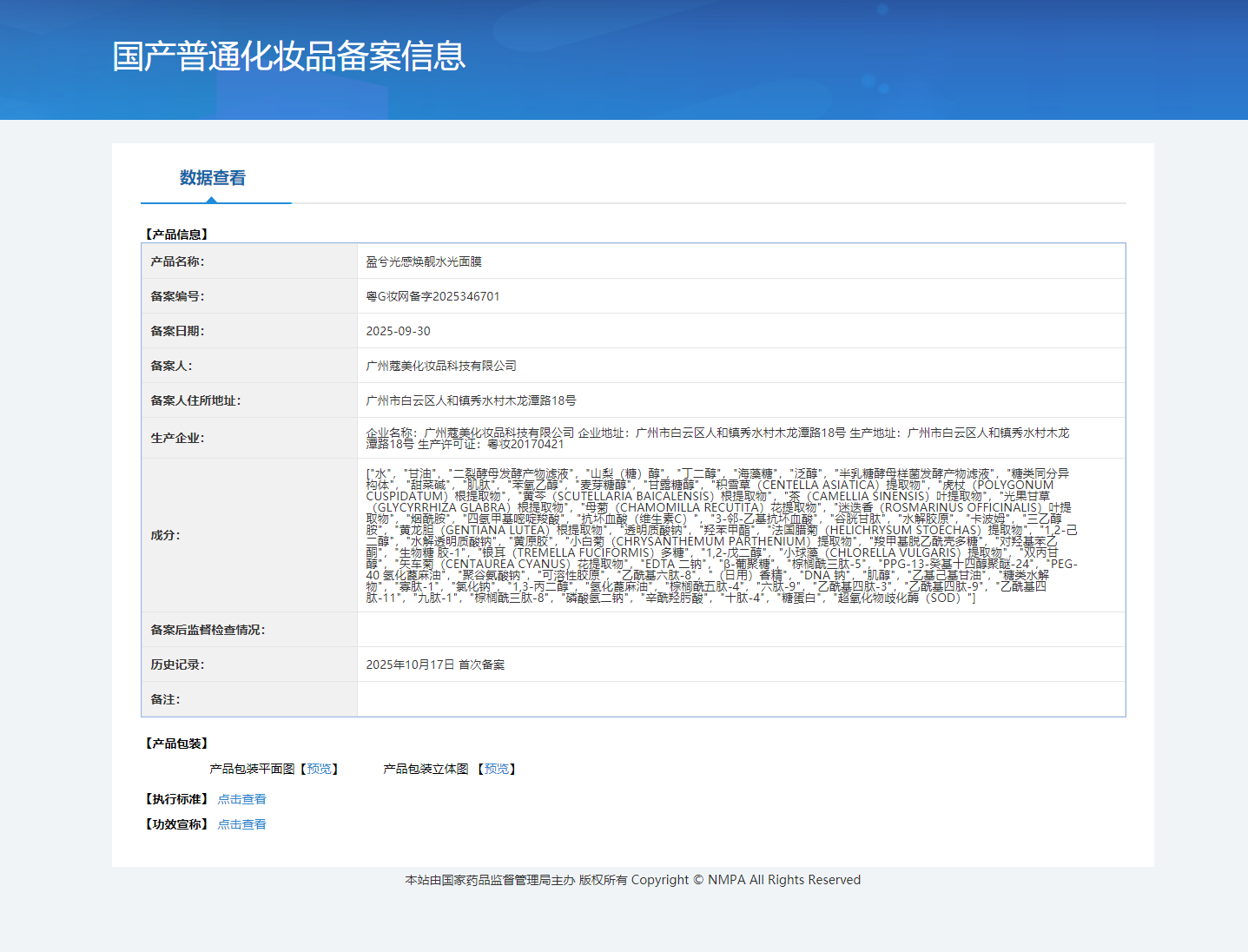 5片 盈兮光感焕靓水光面膜30ml 阿里健康自营