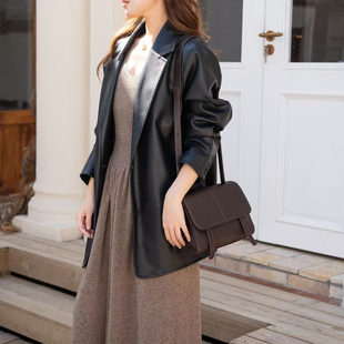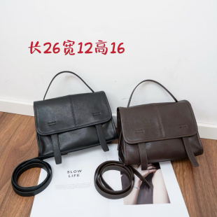 极简风头层植鞣羊皮信使包女单肩斜跨邮差包通勤剑桥包真皮手提包