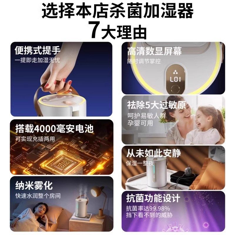 器办公室桌面宿舍空调房双喷补水静音 小型加湿器迷你便携usb充电长续航大喷雾保湿 政府补贴立减15% 2025新款
