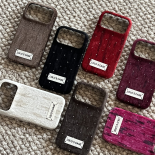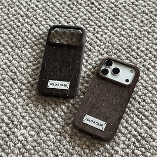 ANNACASE秋冬ins纯色丝绒满天星闪钻绒布手机壳适用iphone17promax苹果14软13新款 15pro女16ProMax防摔保护套