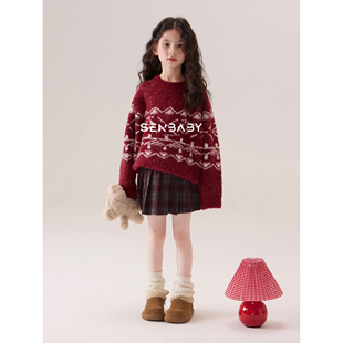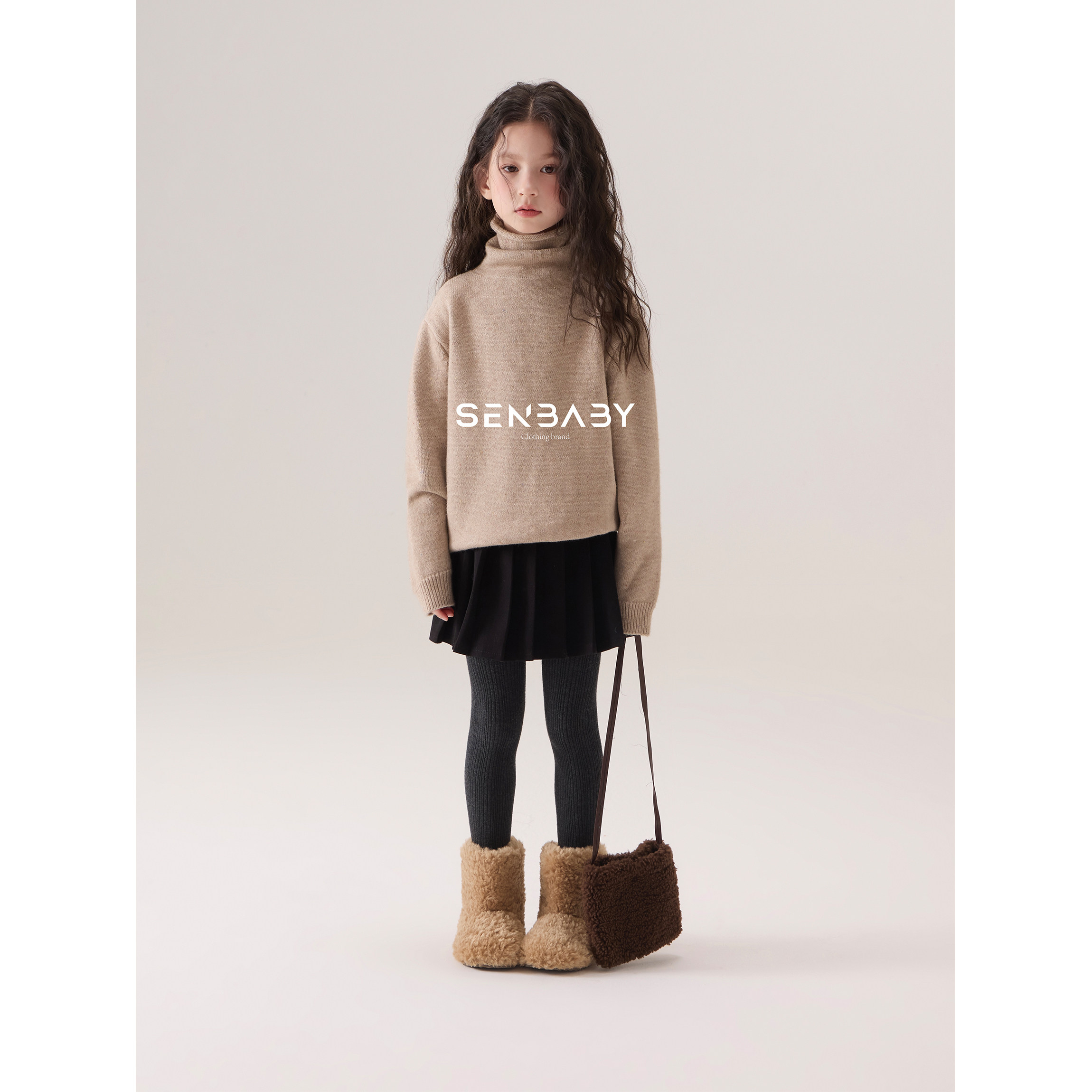 韩版 新款 儿童短裙格子百褶裙 女童保暖半身裙2025冬季 senbaby童装