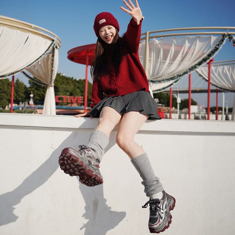 女加绒厚底增高情侣休闲运动鞋 骆驼银月老爹鞋 子 迪丽热巴同款