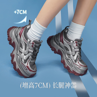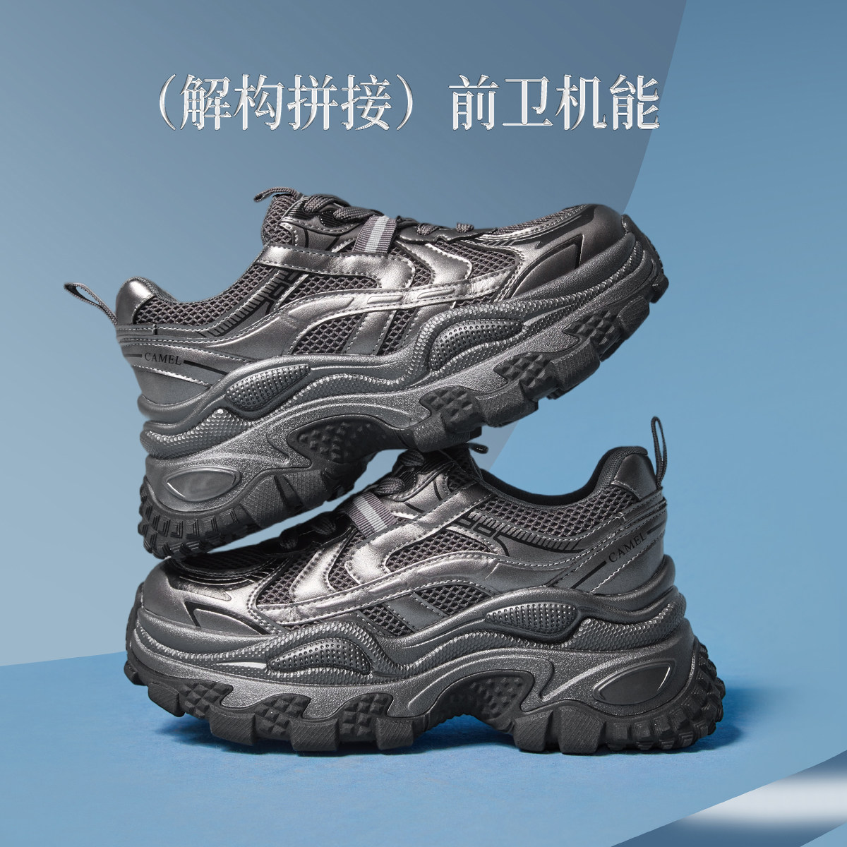 2025秋季 骆驼女鞋 新款 休闲加绒老爹鞋 女 厚底增高银色运动鞋 银熠