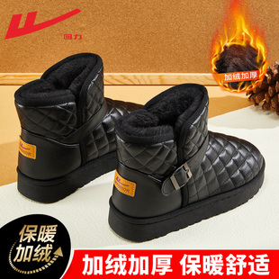女款 加绒加厚皮面防水黑色外穿保暖棉鞋 2025新款 回力雪地靴女冬季
