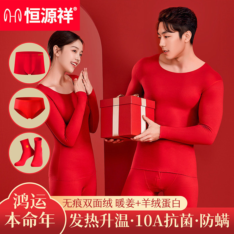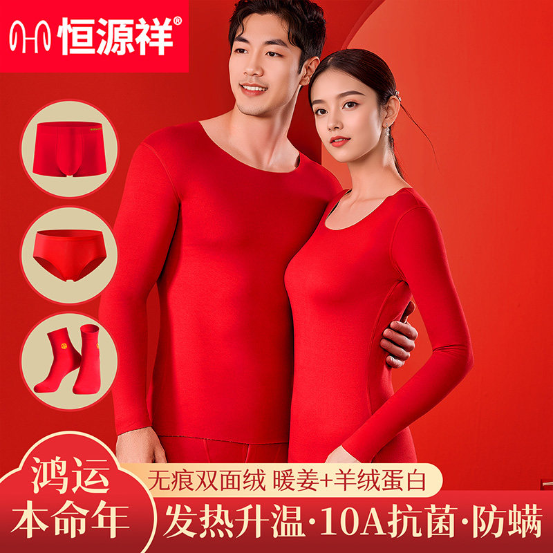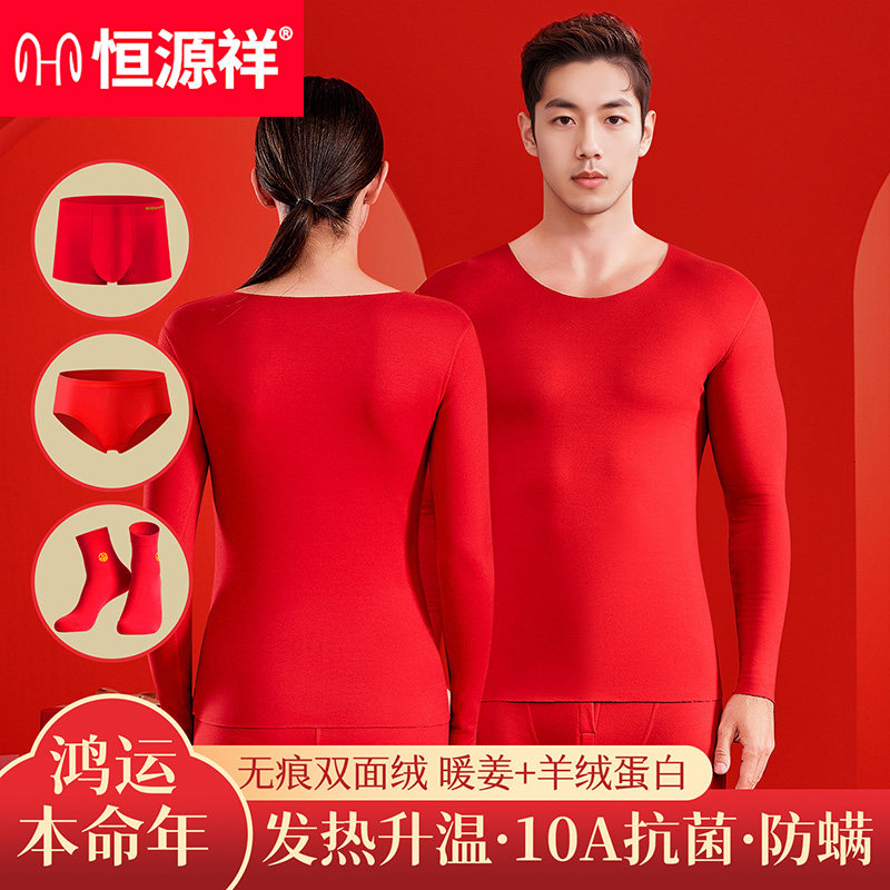 恒源祥本命年保暖内衣高端加厚秋冬大红色2026结婚鸿运套装 男女款