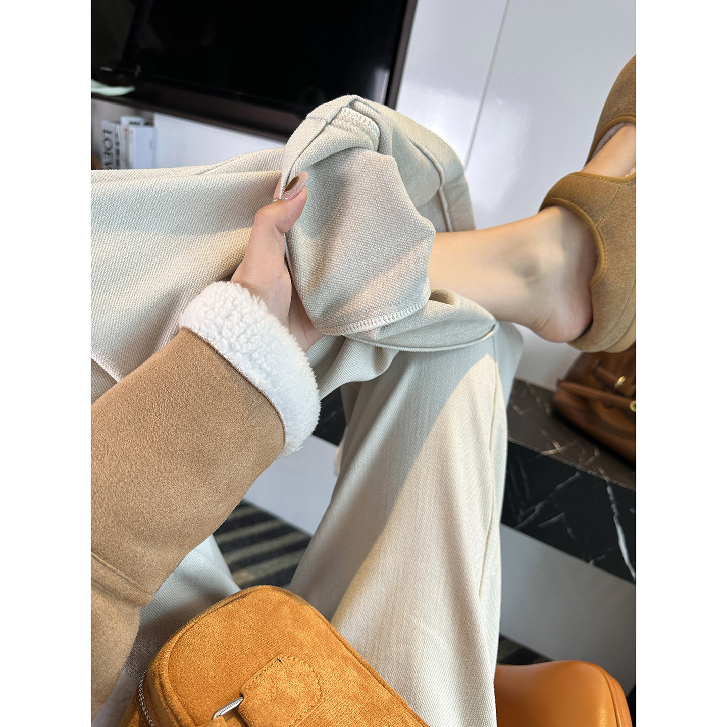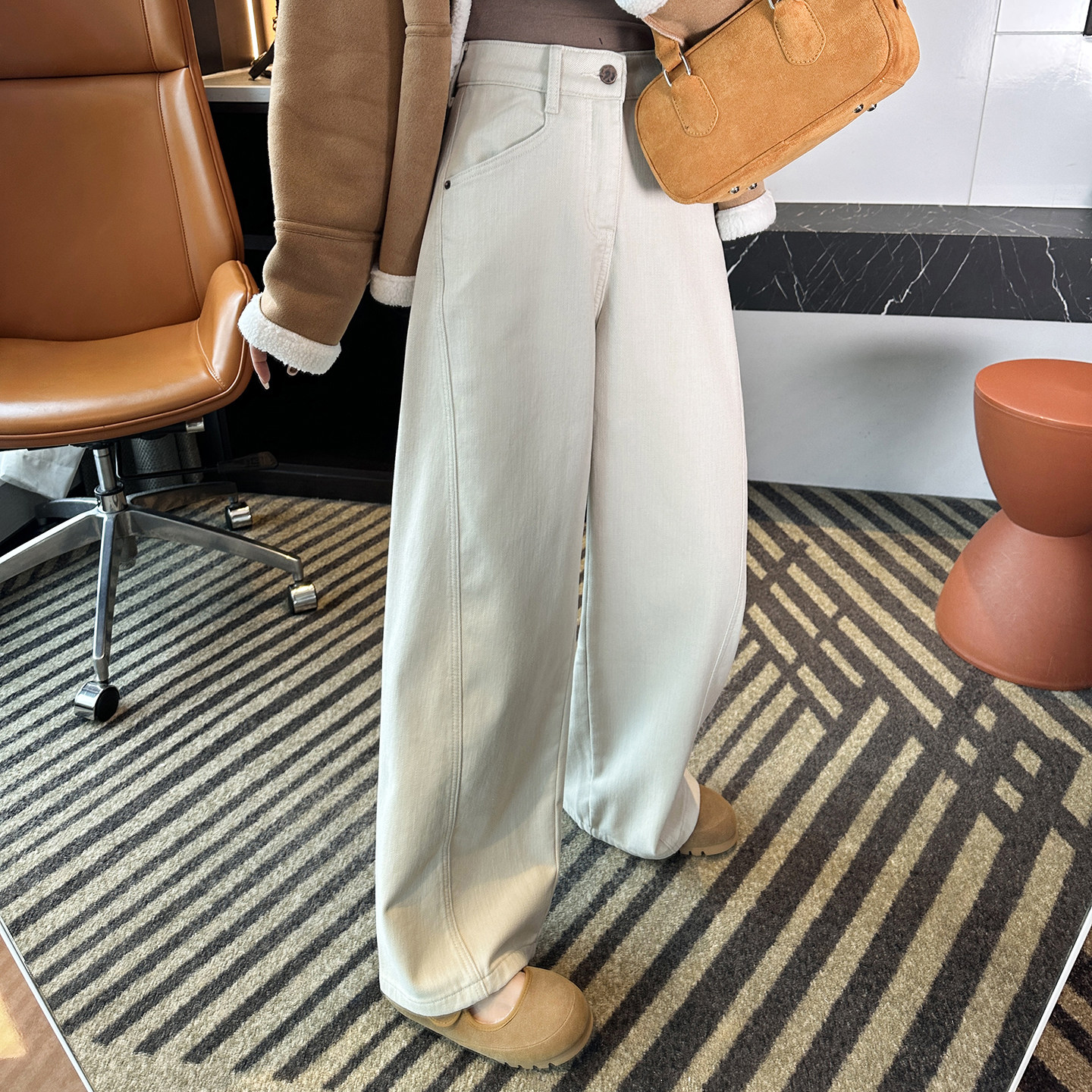 加厚雪尼尔宽松长裤 女2026新款 立体斜裁阔腿牛仔裤 梨型很需要