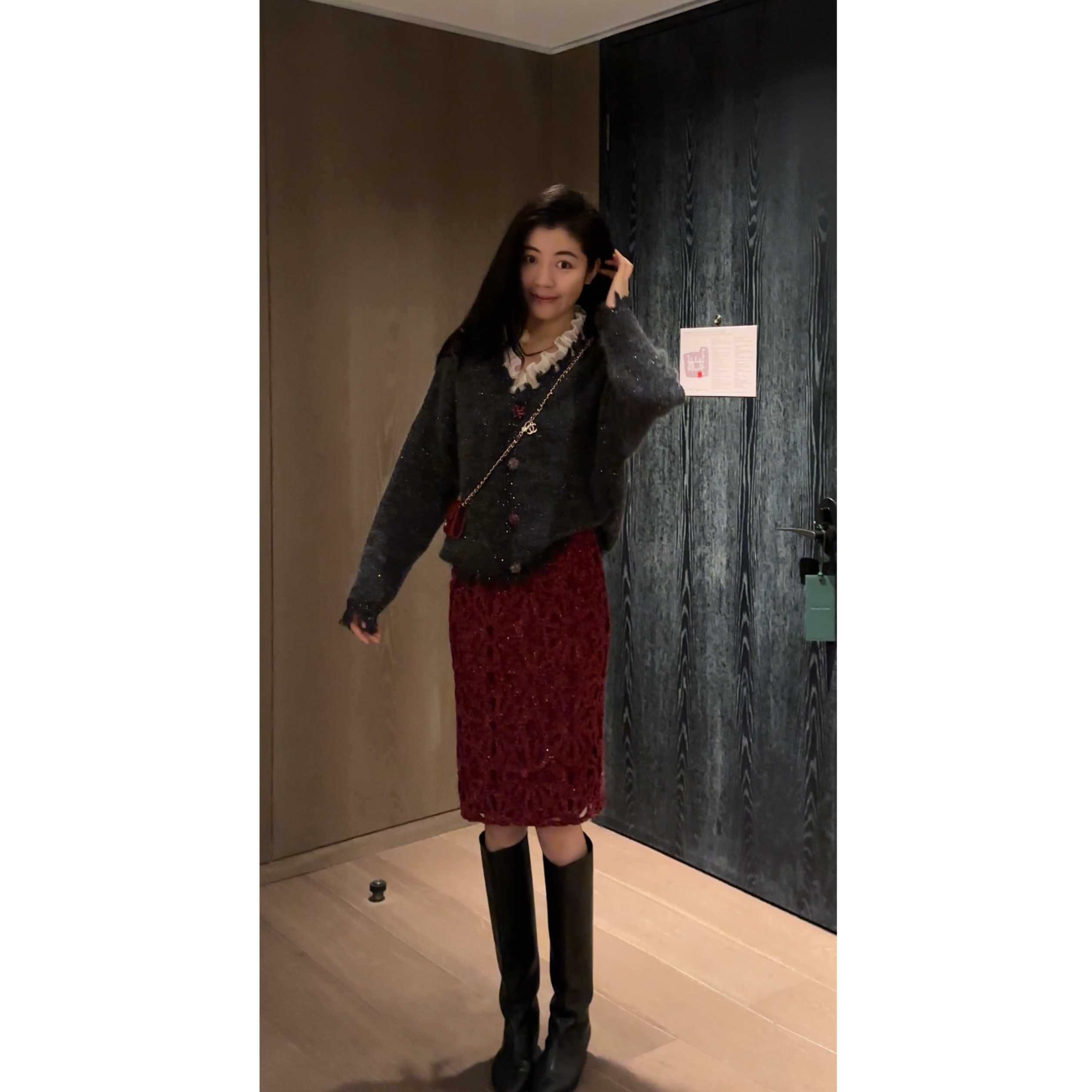 JAMUUS复古羊羔毛皮毛一体翻领外套麂皮绒保暖上衣 毛呢半身裙