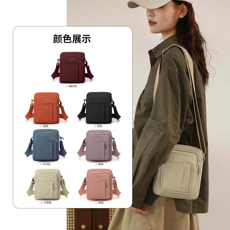 新款 多层背包尼龙布斜挎包单肩包百搭女士迷你斜挎包纯色手机包袋