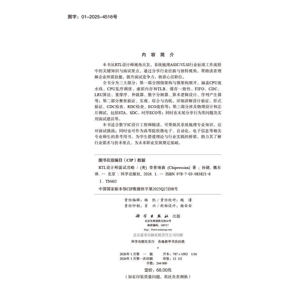提升面试竞争力 RTL设计师面试攻略 帮助读者理解企业所需技能 通过分享行业经验 助力斩获心仪职位 本书从RTL设计师视角出发