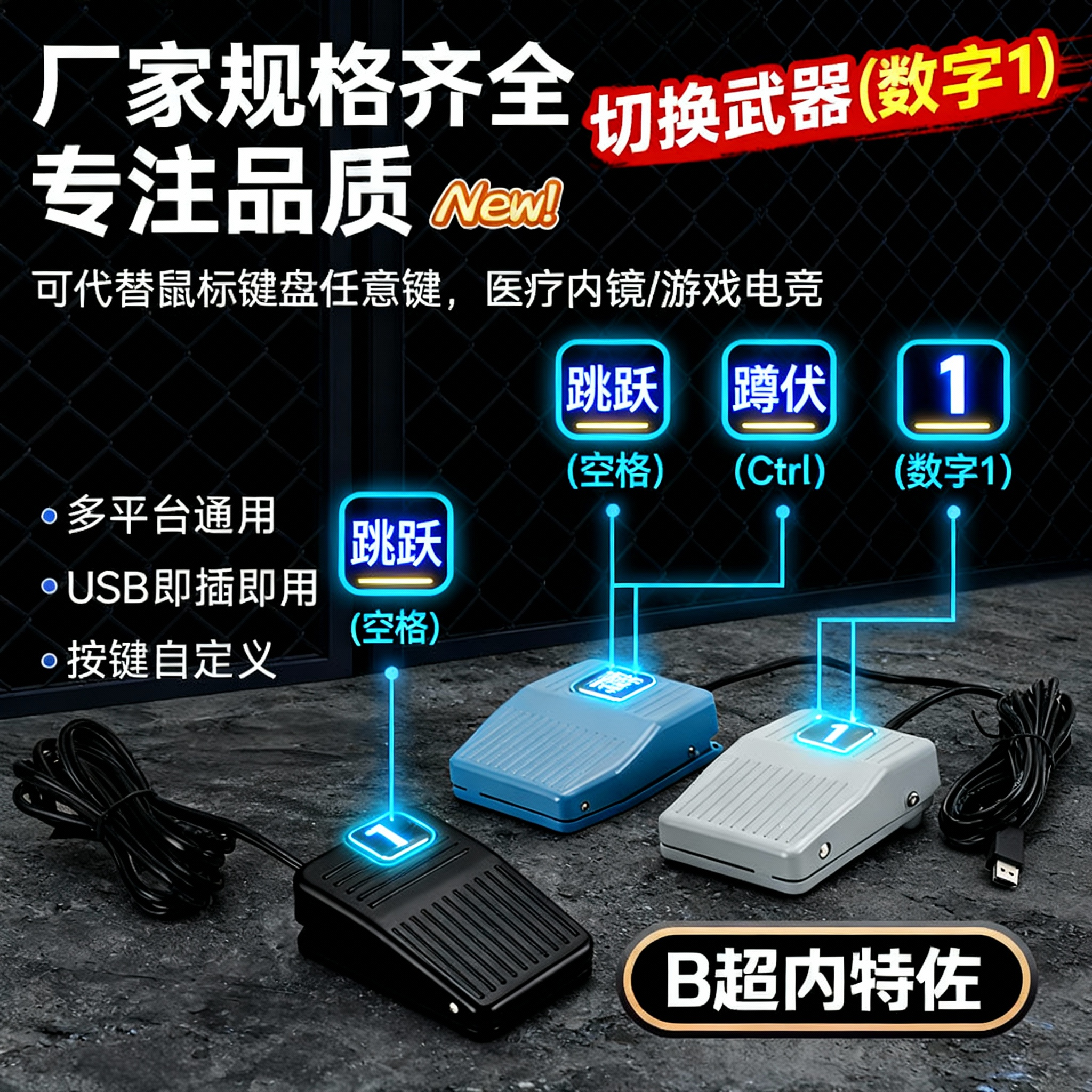 USB脚踏开关脚踏键盘游戏脚踏板三角洲爆闪踏板脚控复制粘贴鼠标