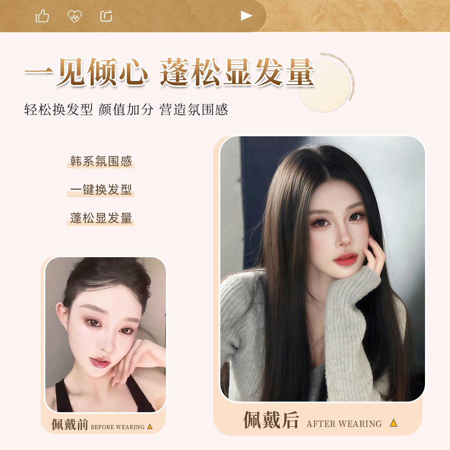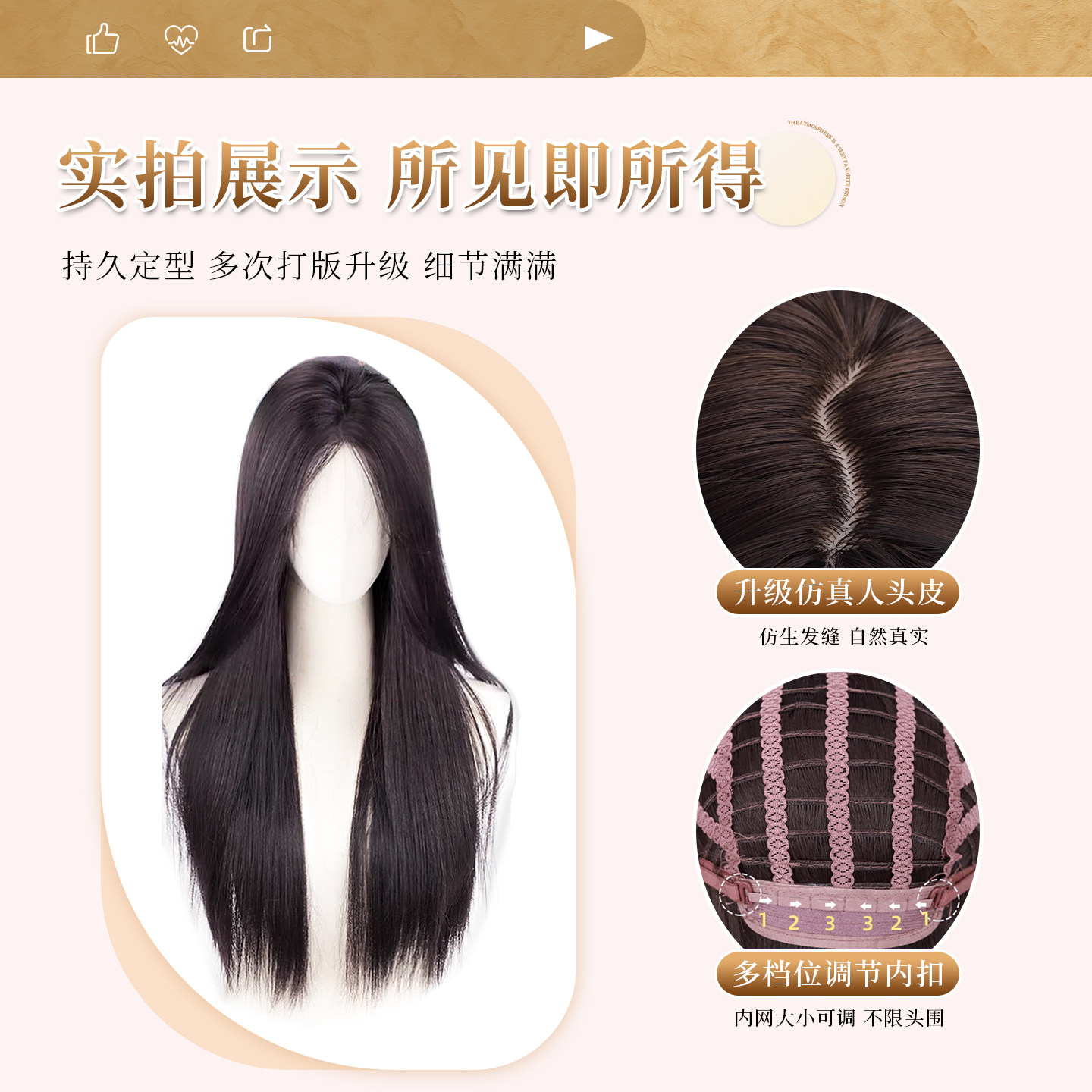 假发全头套女自然无痕中分黑长直假发女长发仿真发日常整顶假发套