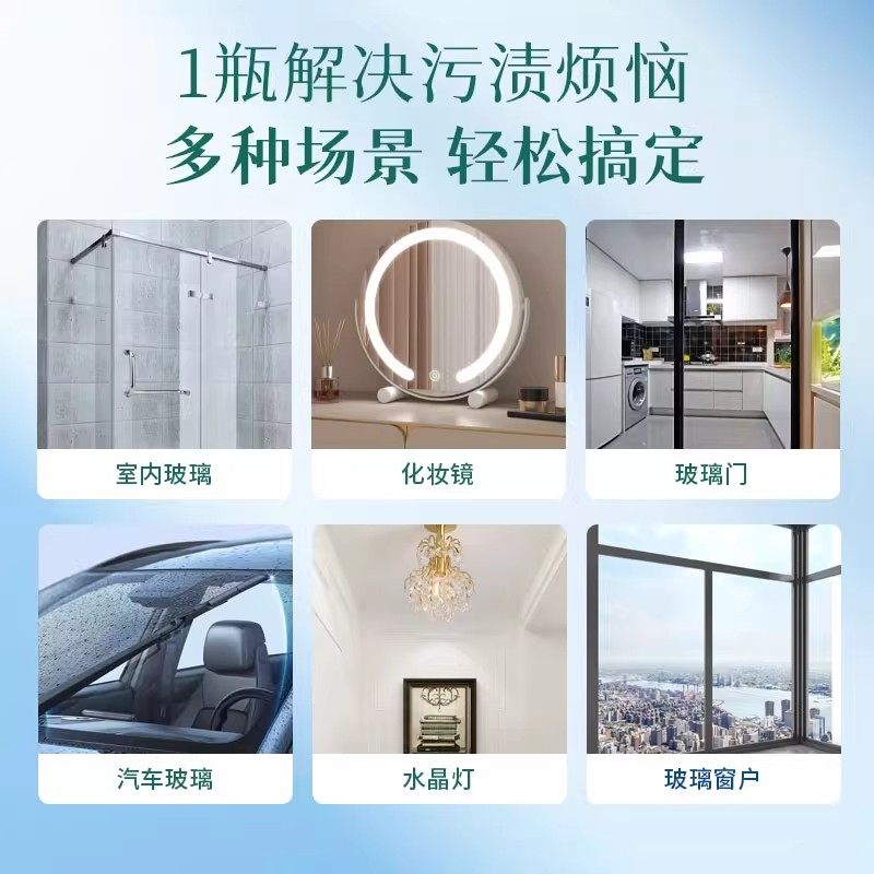 浴室玻璃清洁剂玻璃水垢强力去污淋浴房擦窗户清洗卫生间保洁除垢