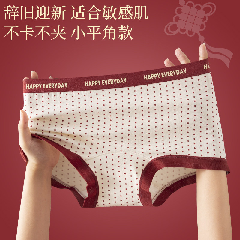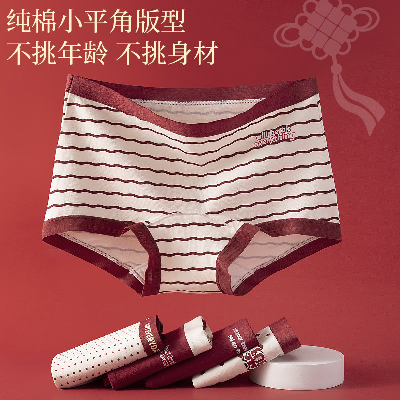 红色平角裤 无痕高腰收腹抗菌女生性感大码 女纯棉2025新款 猫人内裤