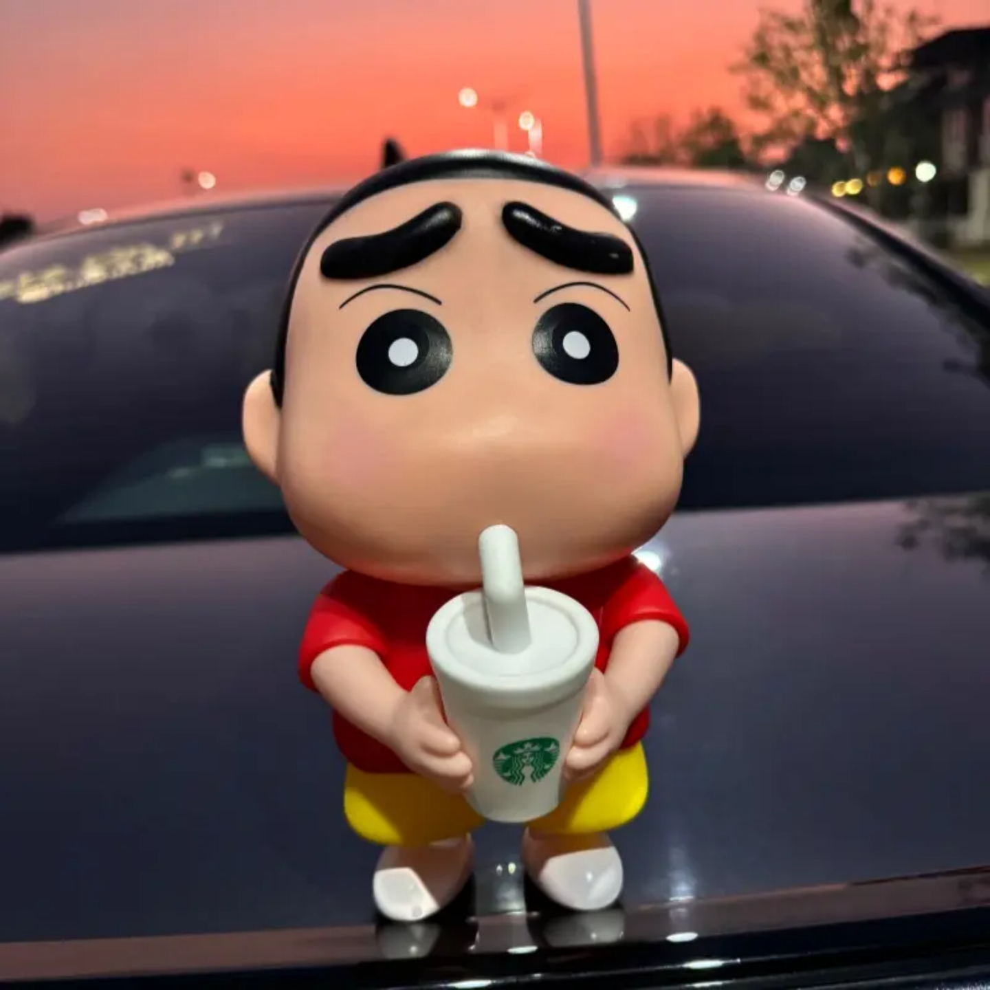 爱喝奶茶 饰品公仔创意 蜡笔小新车尾部挂件可发光车载摆件汽车装