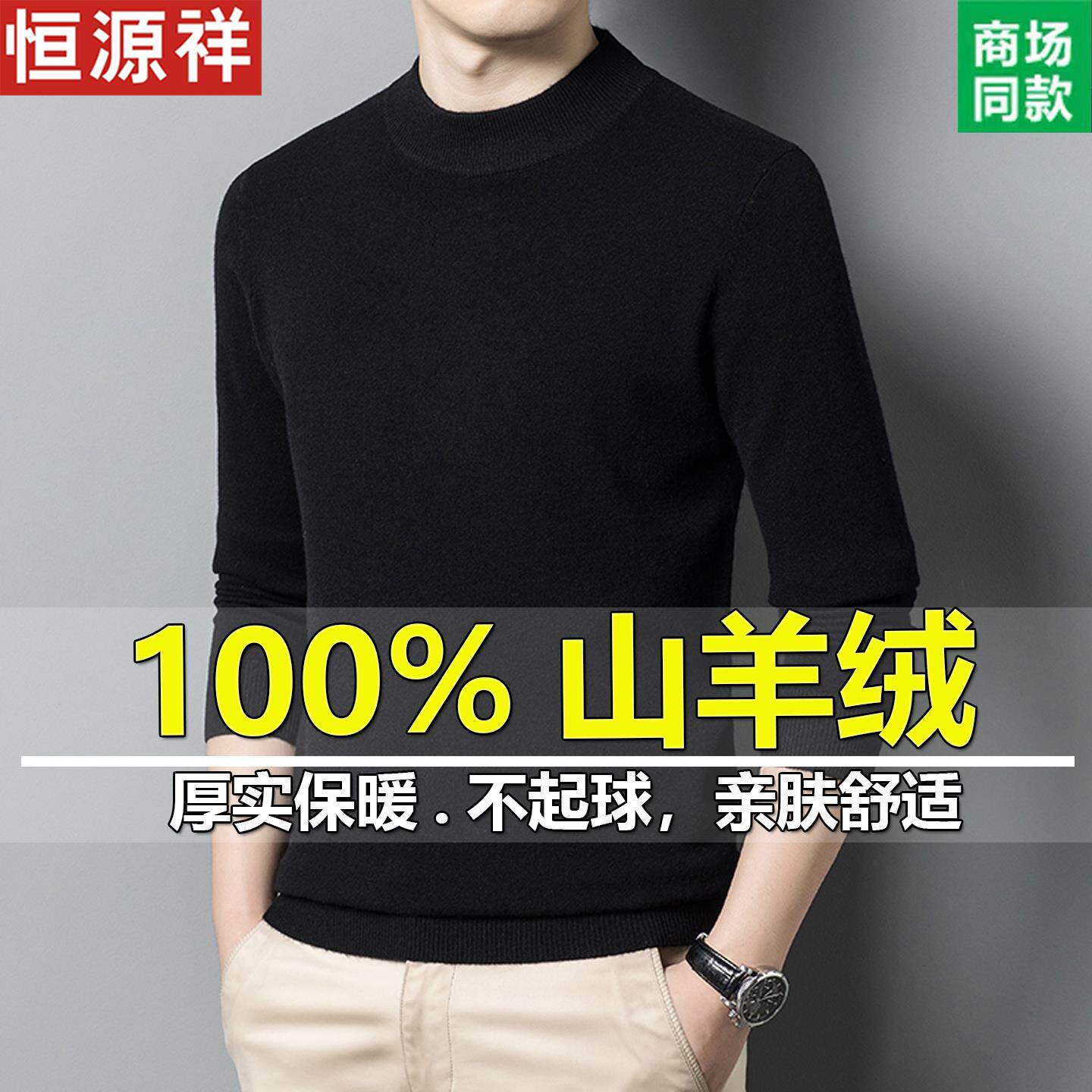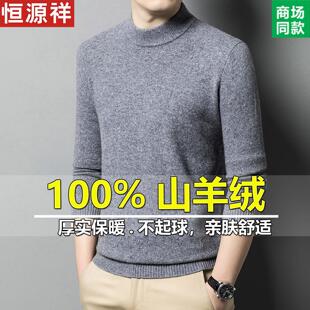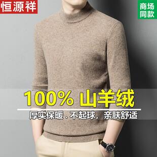 保暖加厚针织毛衣半高领中年打底羊毛衫 恒源祥100%纯羊绒衫 男冬季