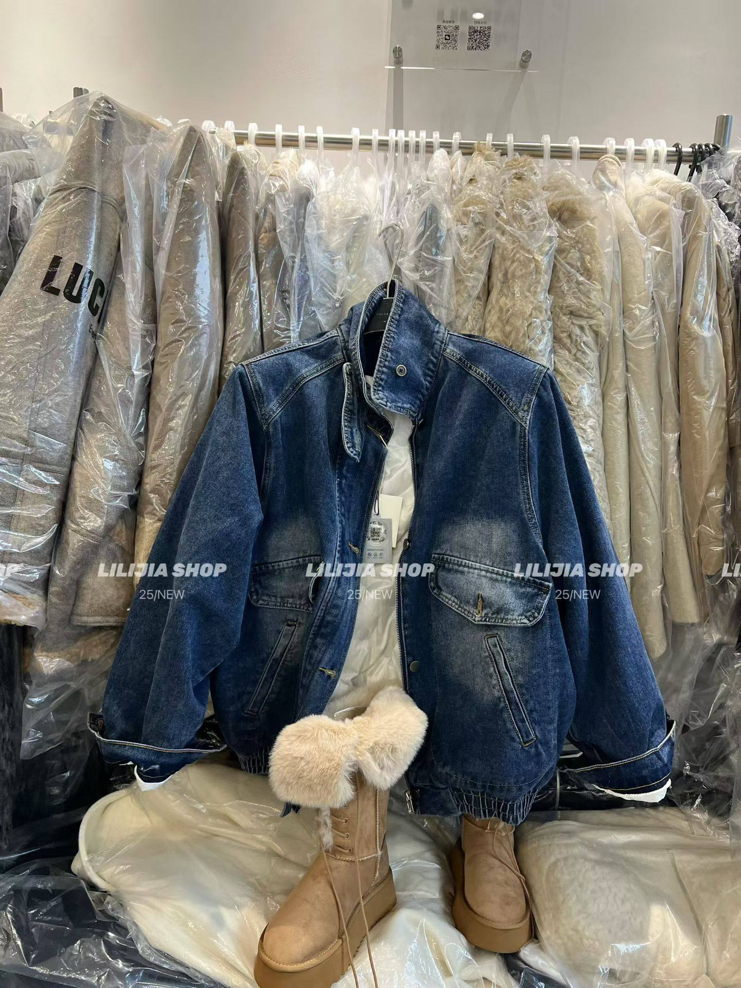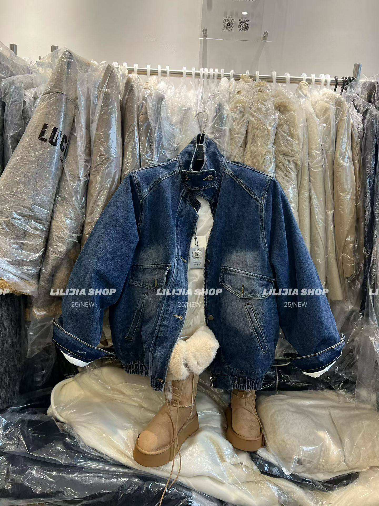 宽松显瘦百搭立领羽绒内胆牛仔外套女 韩版 MIDO家 2025秋冬新款