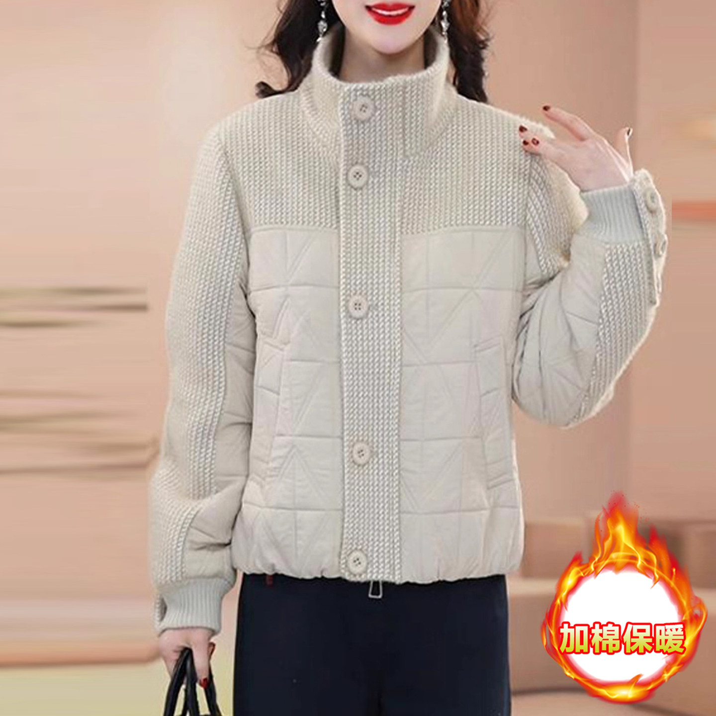 短款 韩版 气质妈妈装 立领流行夹棉外套女秋冬爆款 保暖棉服上衣 新款