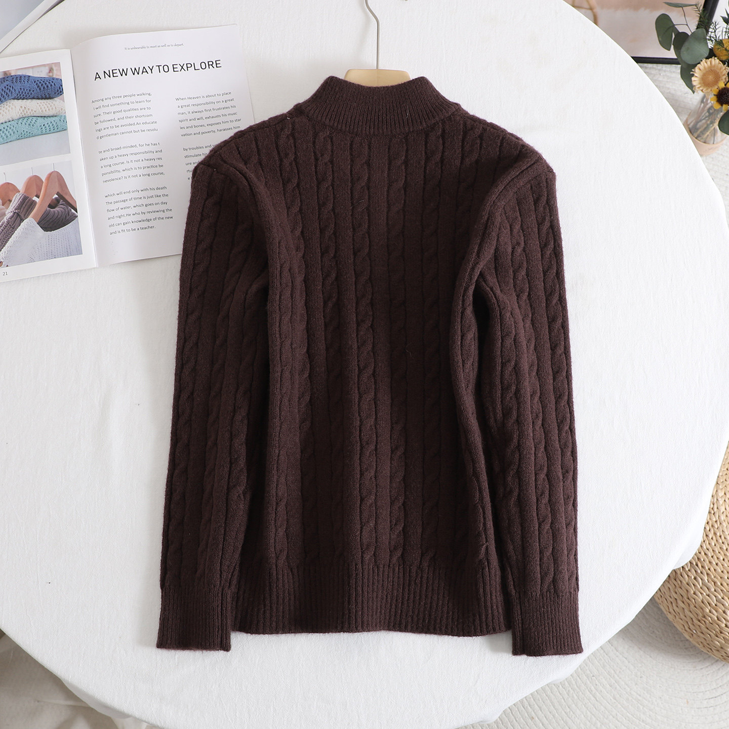 艾 女2025秋冬保暖套头毛衣外套上衣 老钱风半拉链立领绞花针织衫