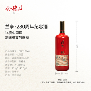会稽山黄酒三十年陈兰亭280年纪念酒送礼宴会高端礼盒半干型黄酒