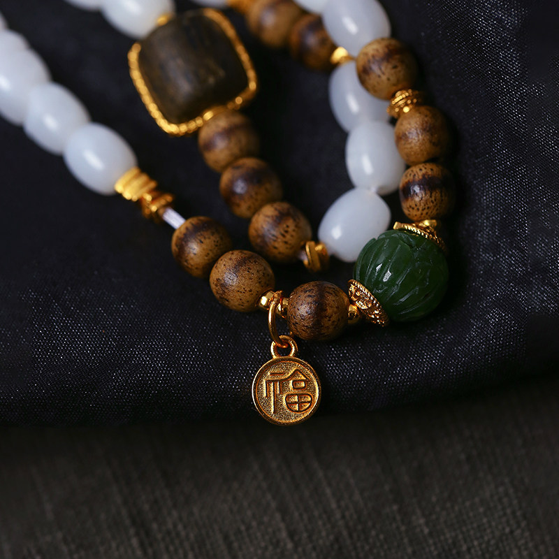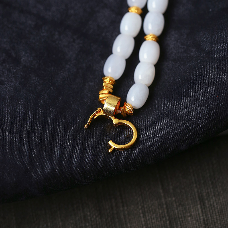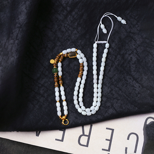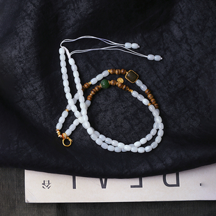 天然和田玉白玉桶珠原创搭配款 玉石万能扣链子饰品 项链吊锥绳女款