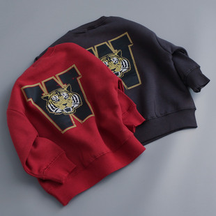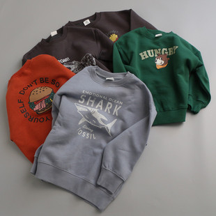 19128多色男女童秋冬加绒保暖卫衣儿童圆领汉堡鲨鱼套头衫 160
