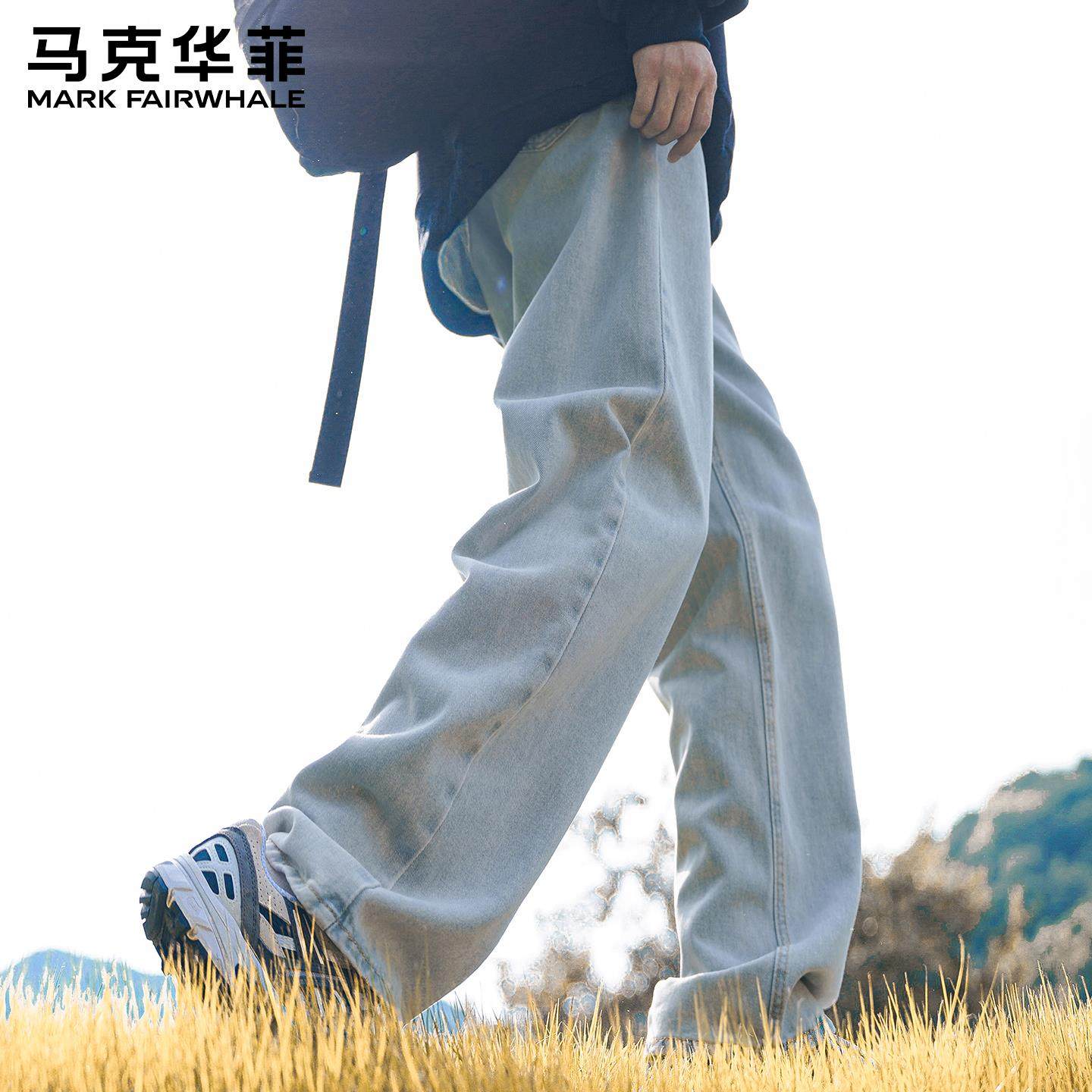 男士 百搭休闲裤 2025秋季 宽松直筒裤 子 新款 马克华菲高街阔腿牛仔裤