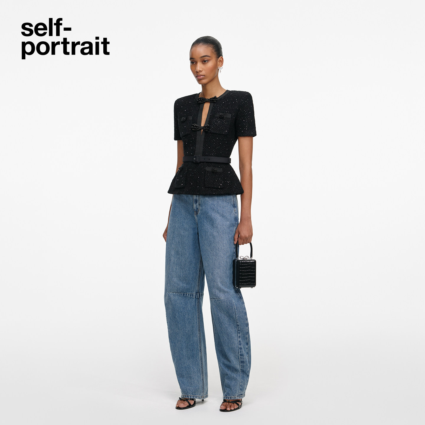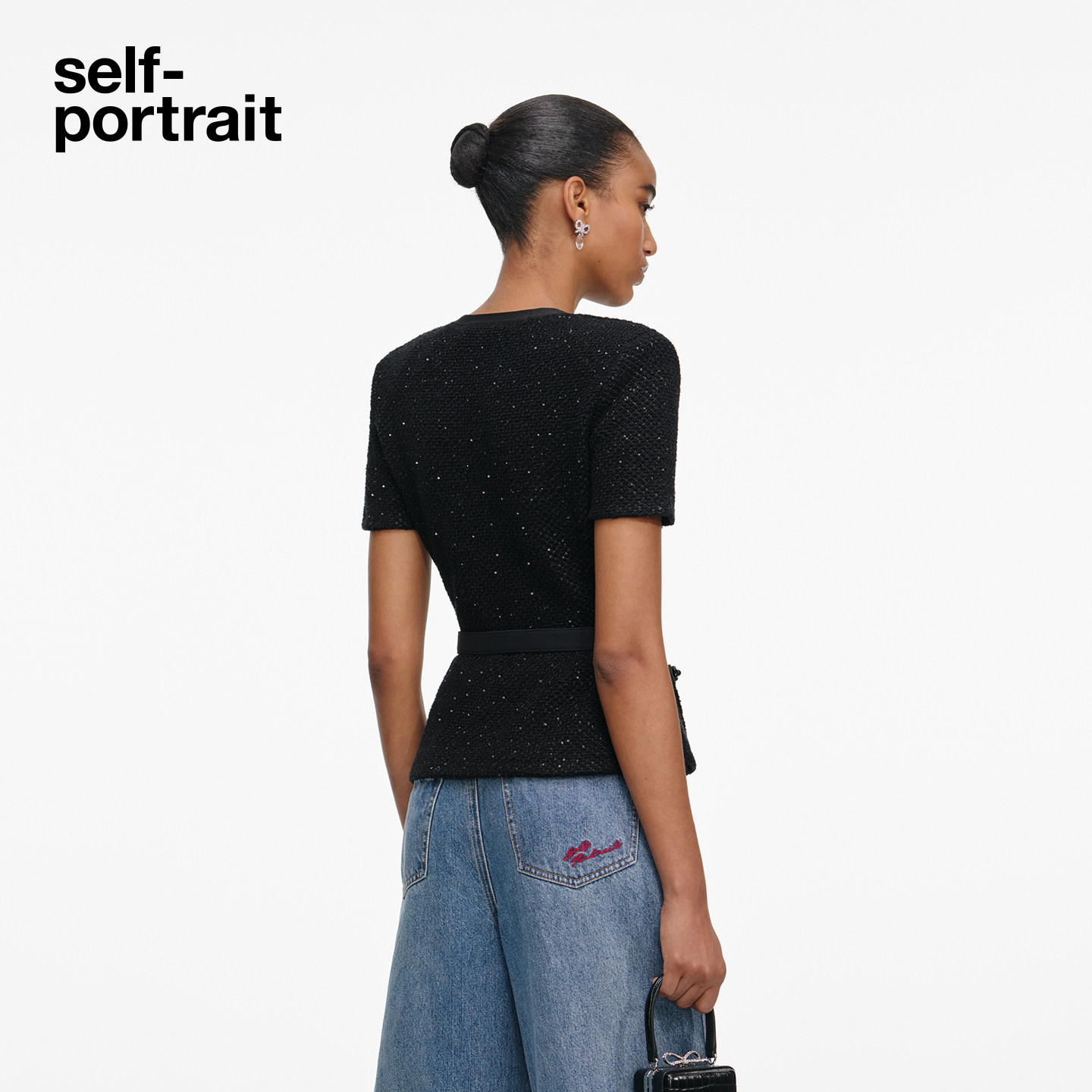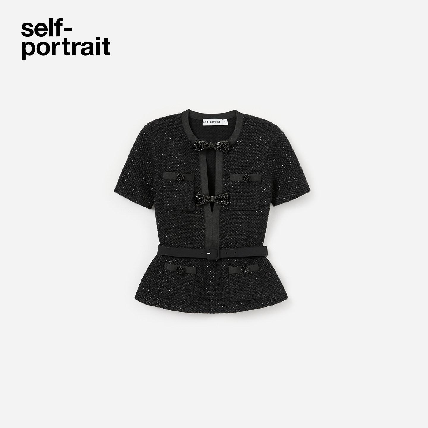 黑短袖 self 经典 2026早春新款 蝴蝶结亮片针织上衣 portrait