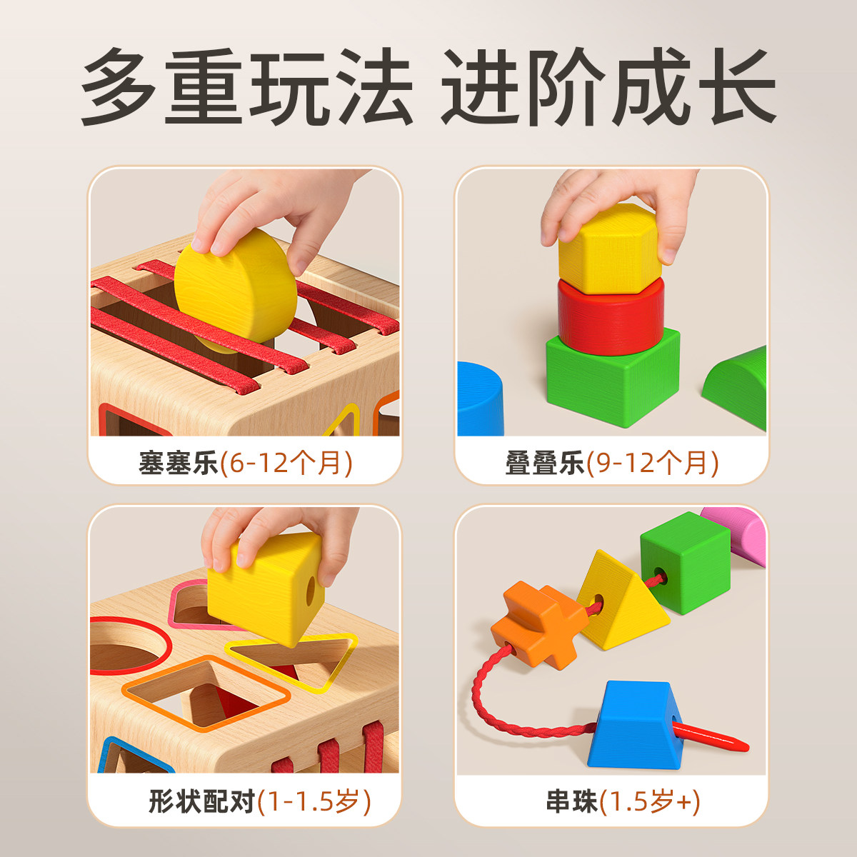 几何形状配对玩具拼图0到3岁蒙氏早教益智宝宝一岁半儿童拼装 木质