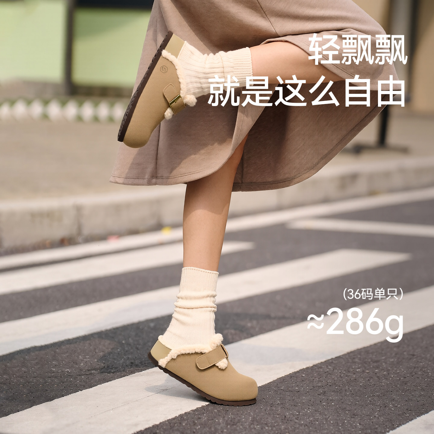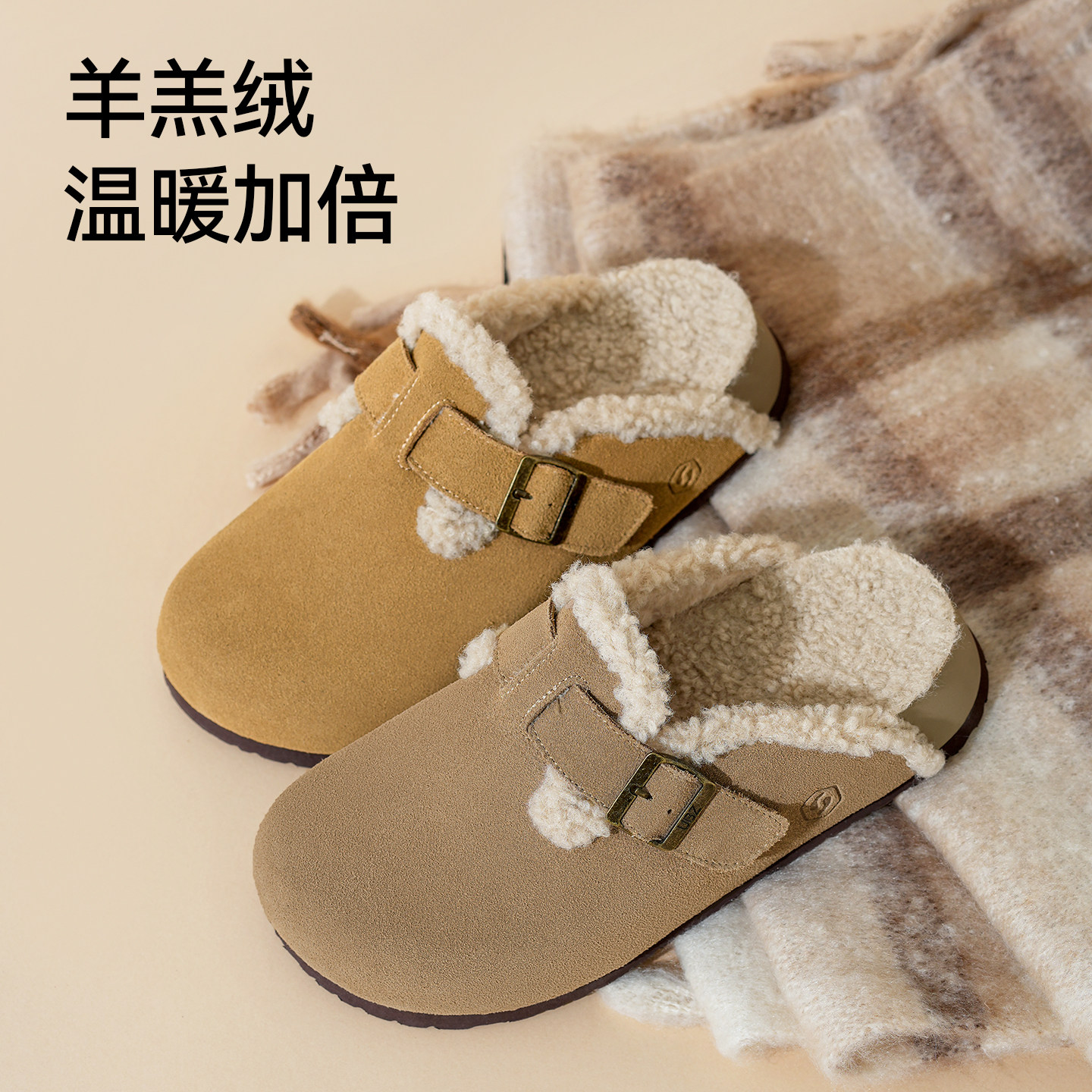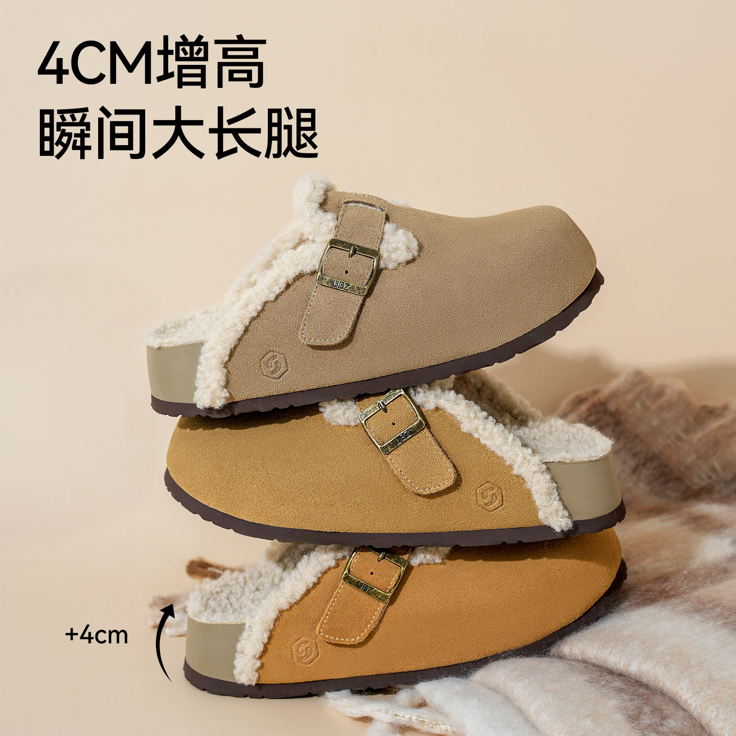 棉鞋 UBZ 包头增高毛毛鞋 女外穿2025年冬新款 防水厚底加绒勃肯拖鞋