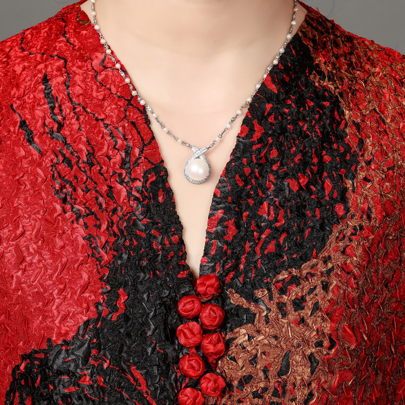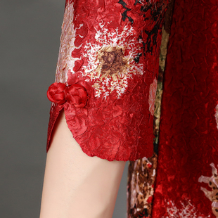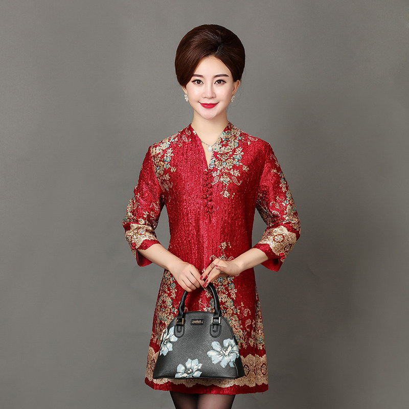 大码 中老年女装 压皱真丝旗袍连衣裙妈妈装 2020春秋季 旗袍裙子 新款
