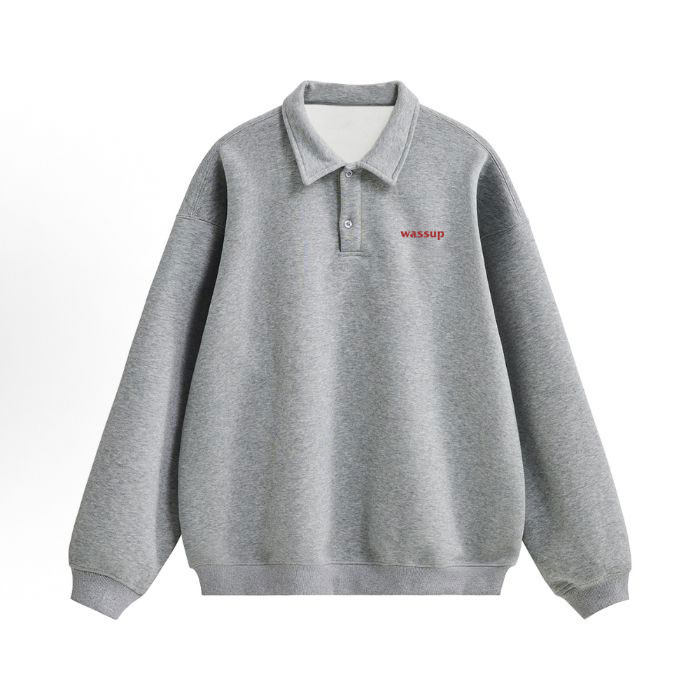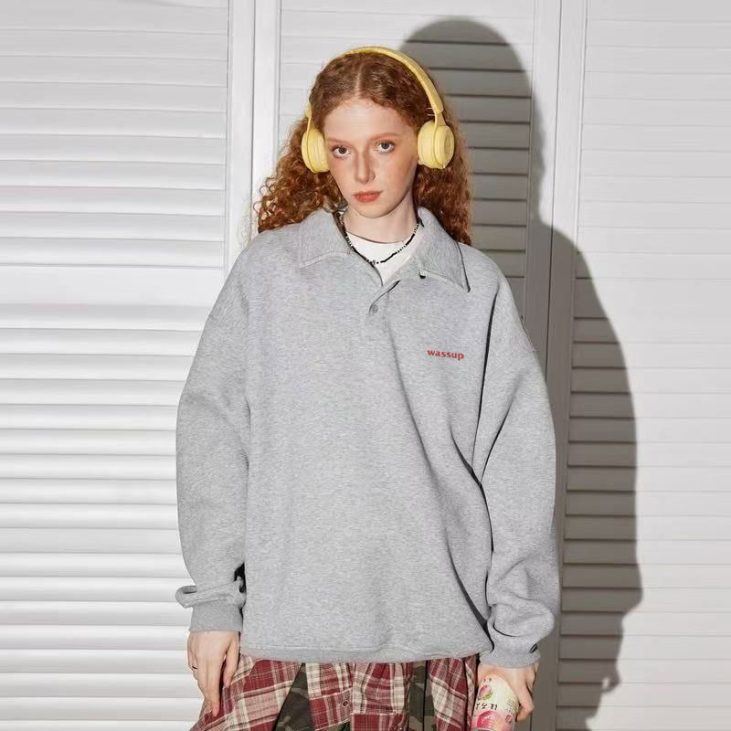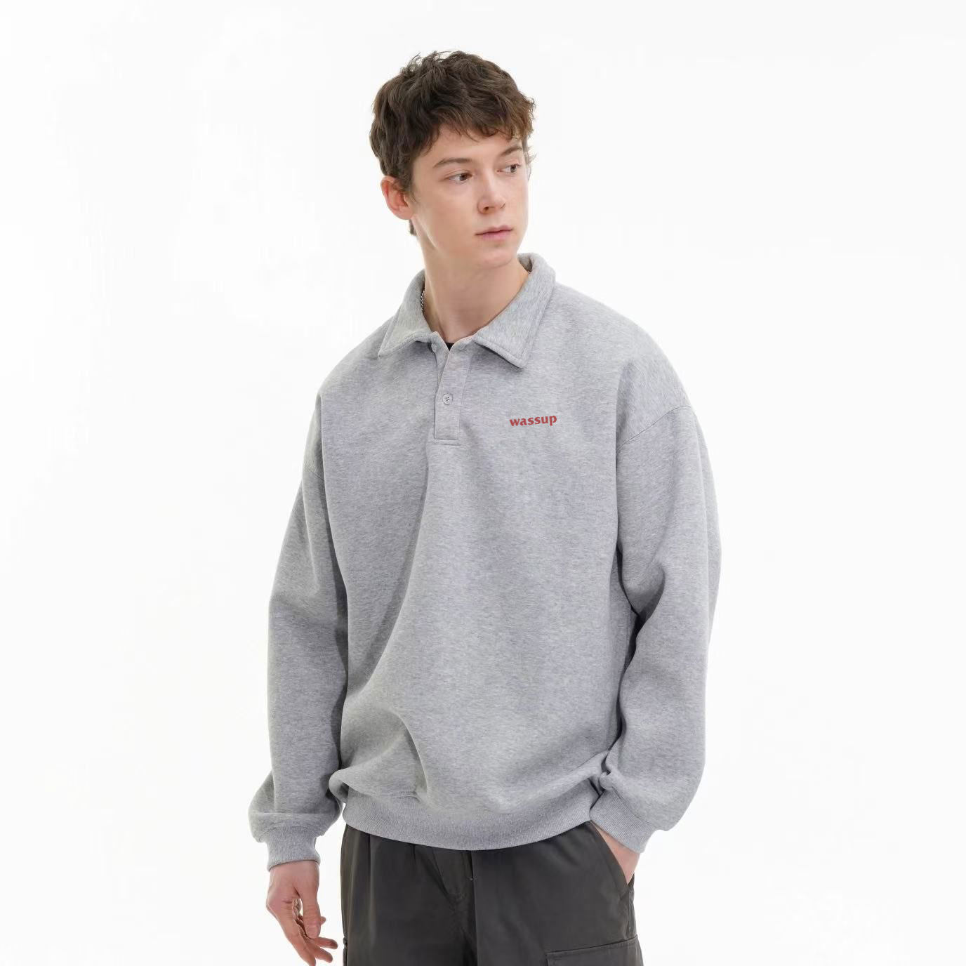 WASSUP简约休闲polo领卫衣女秋冬加绒加厚情侣亨利翻领上衣外套男