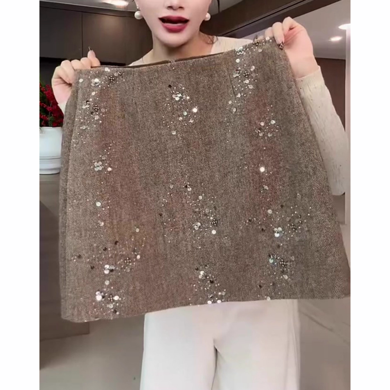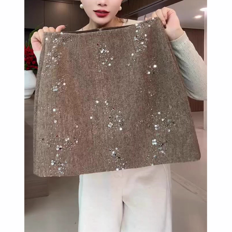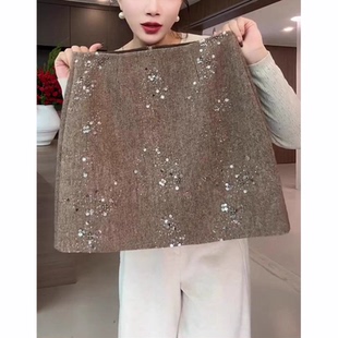 高级感亮片短裙女冬季 高腰显瘦百搭洋气优雅气质半身裙 流行新款