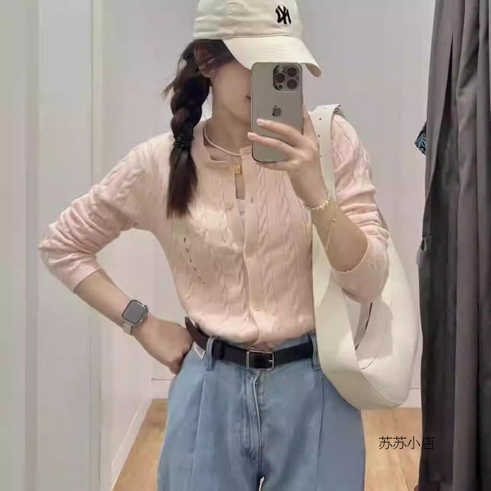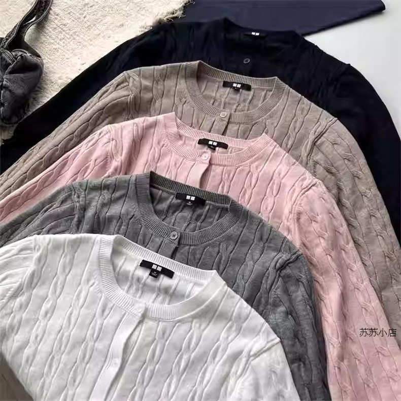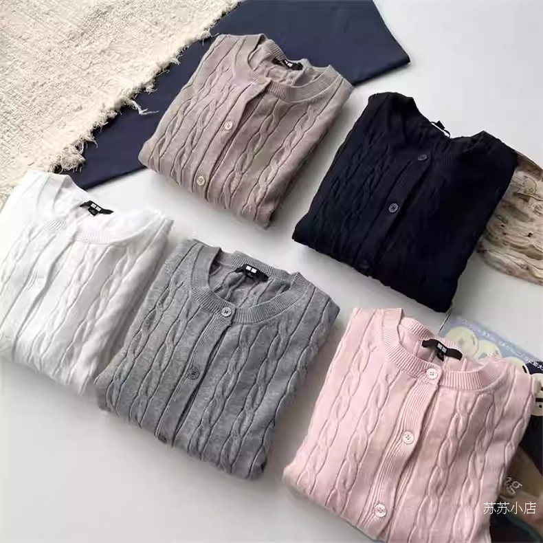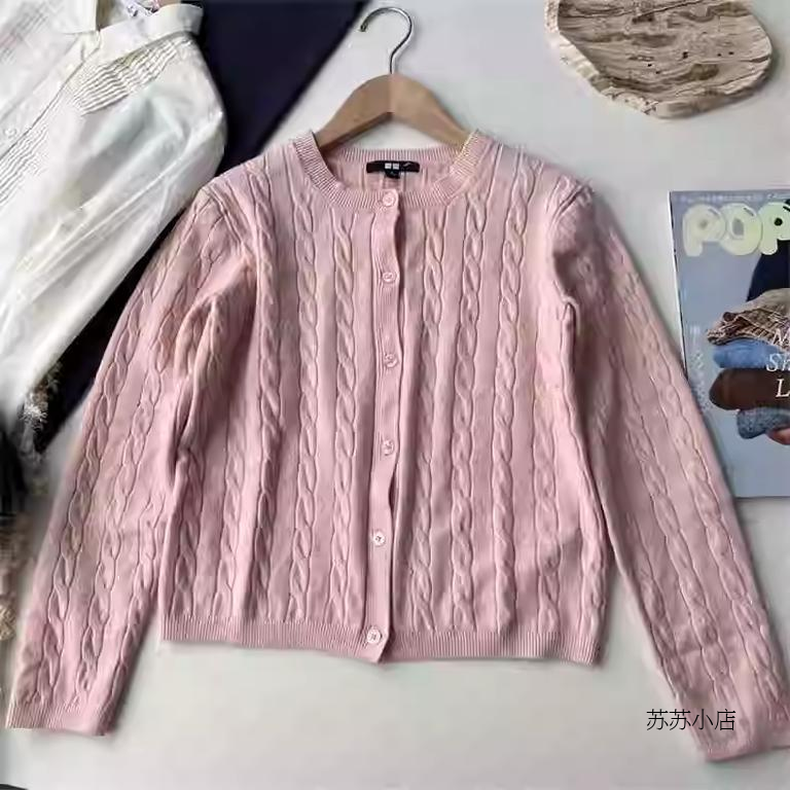 长袖 纯元 纽花圆领针织开衫 女装 外套休闲百搭毛衣471612 苏苏家