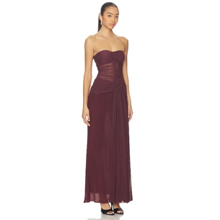 Bec 新品 Bridge抹胸连衣裙复古酒红收腰裙REVOLVE 冬季