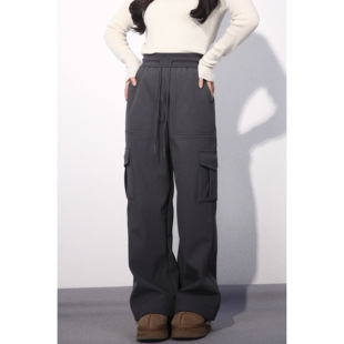 EYE 黑色宽松阔腿直筒裤 天生长腿 裤 女重工 小个子加绒工装 LARGE