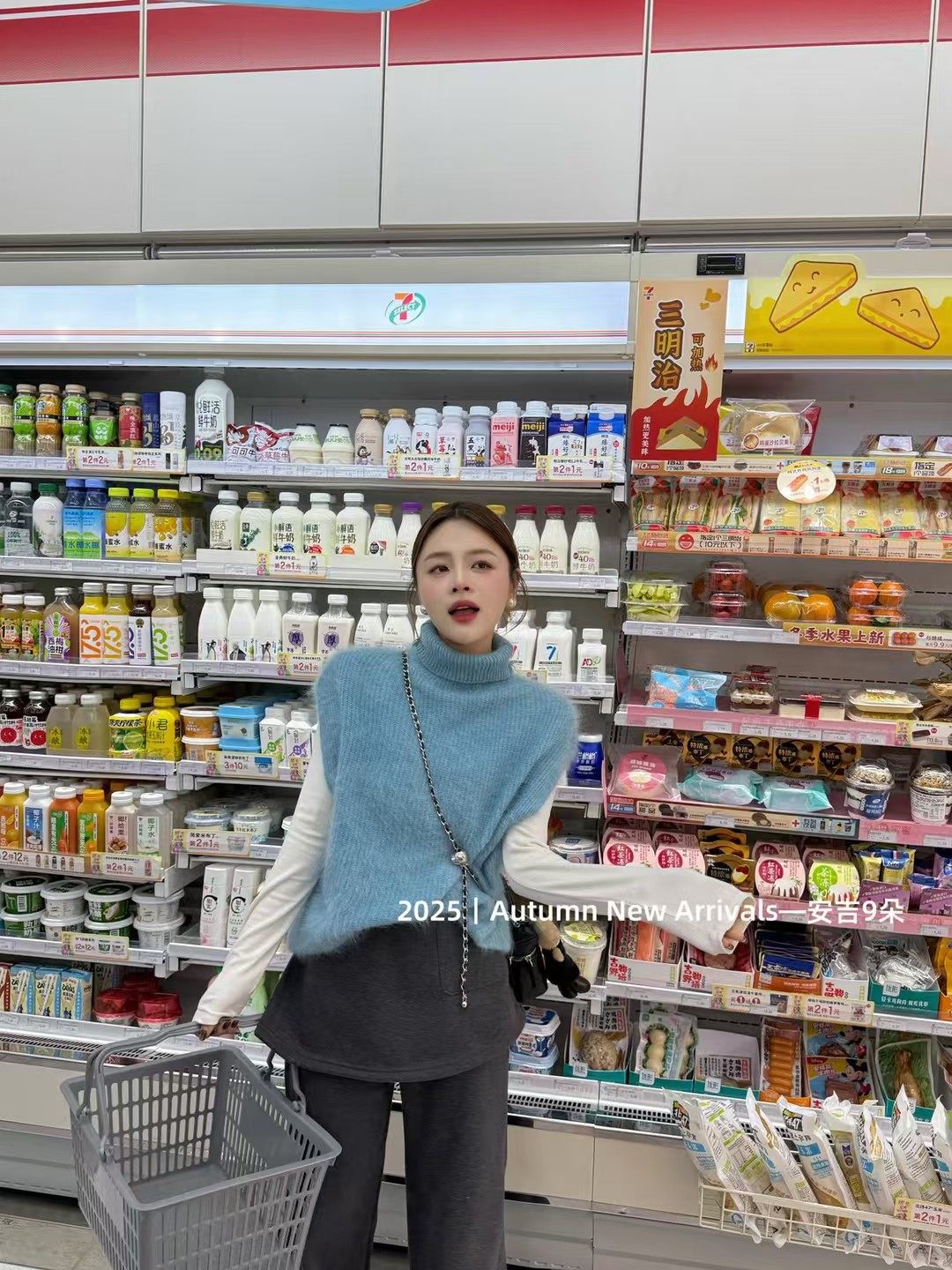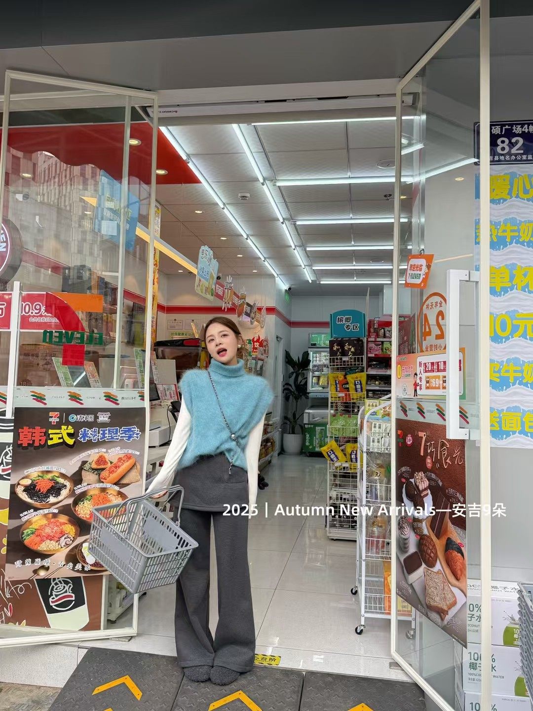 宽松休闲高领套头毛衣女慵懒风背心潮 韩版 韩国东大门2025冬季 新款