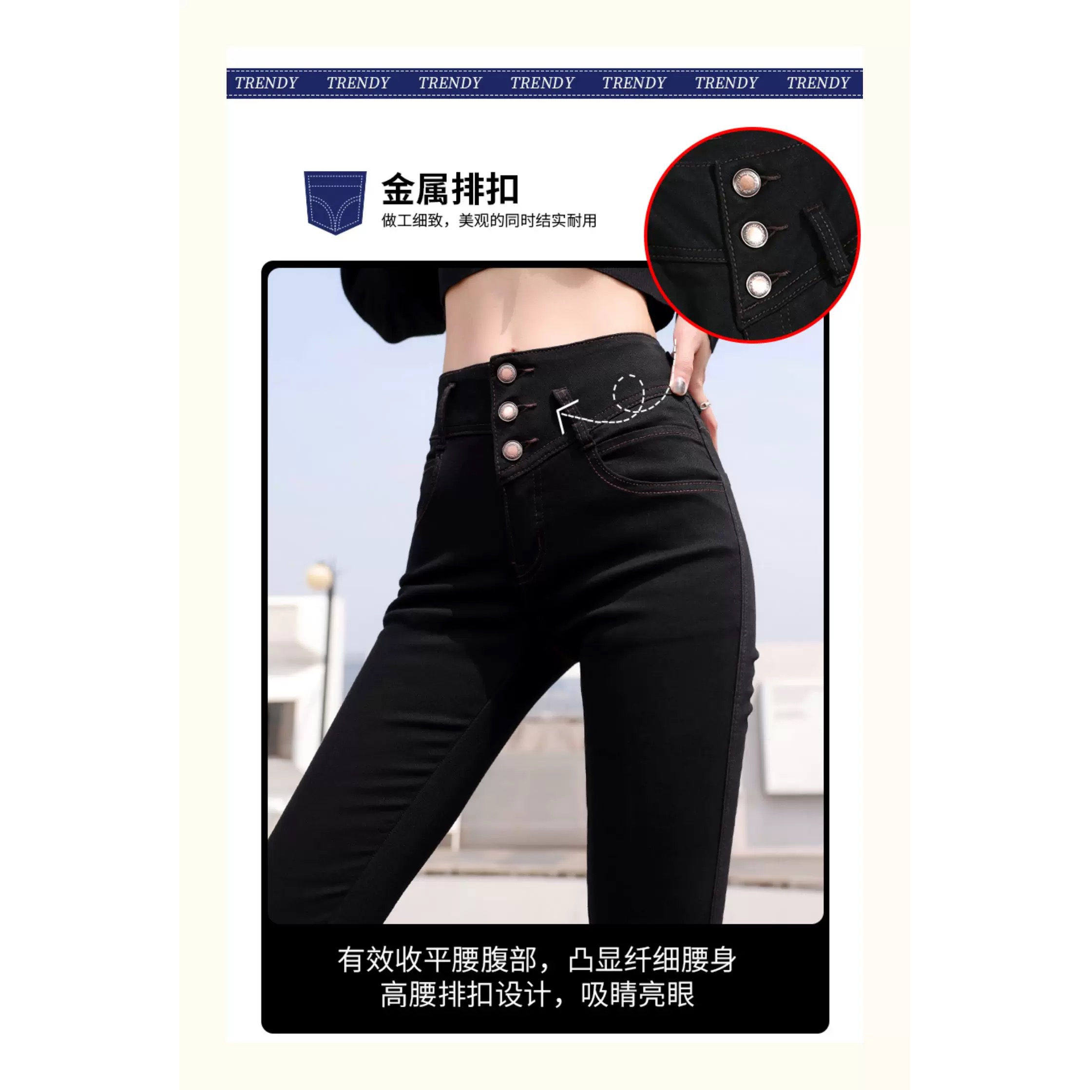 黑色加绒小脚铅笔裤 薄绒显瘦修身 女秋冬2025新款 超高腰紧身牛仔裤