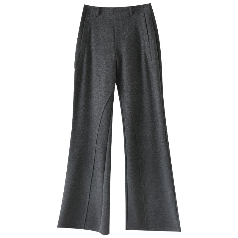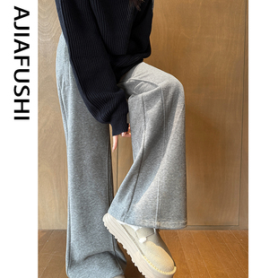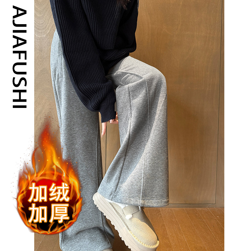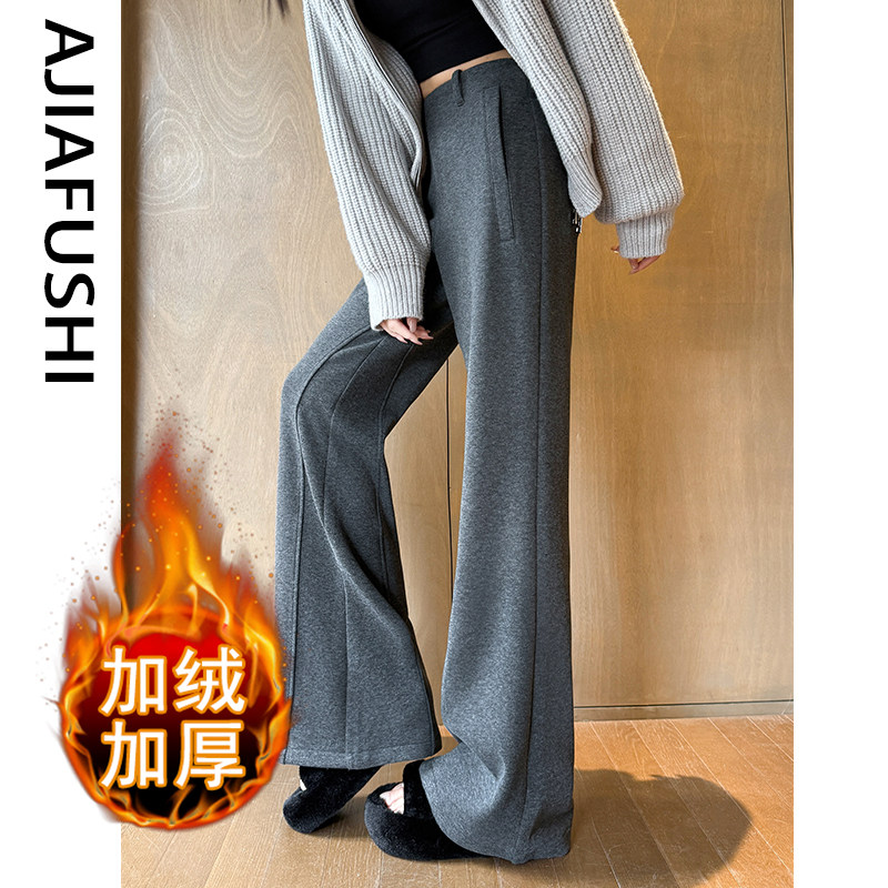 高腰休闲羊毛呢糯米长裤 灰色加绒加厚微喇裤 女秋冬小个子2025新款