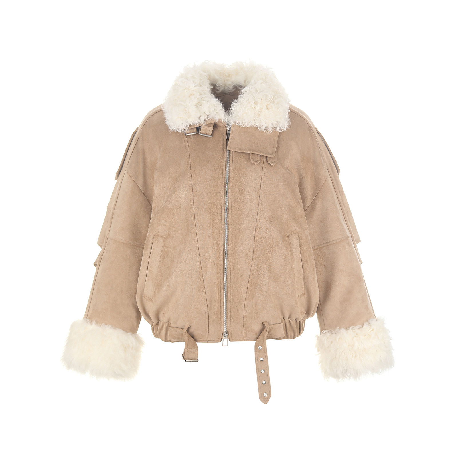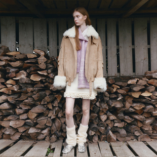 wana 卡其百搭外套女 try羊毛领设计感内胆可拆卸羽绒外套25冬新品
